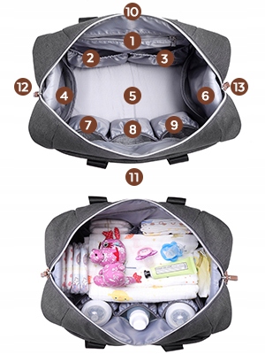 Много хранилища много карманов для новорожденных, включая широкую открытую камеру с двойной молнией, передний карман для родителей, с петлей для ключевых бутылок, подгузников или салфеток. Два боковых кармана, прикрепленных магнитом. У всего есть свое место.
