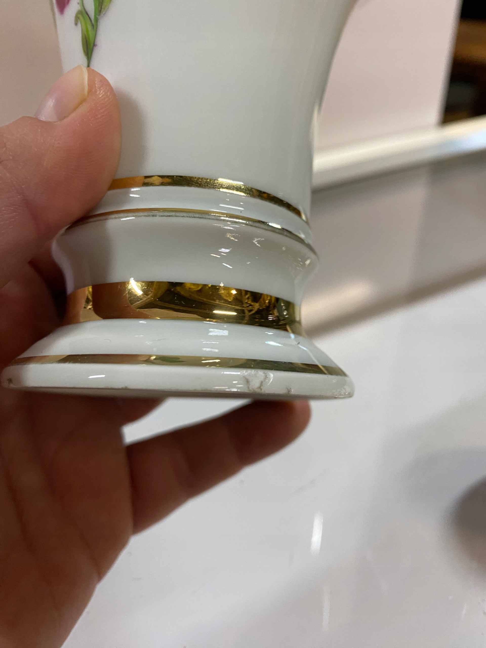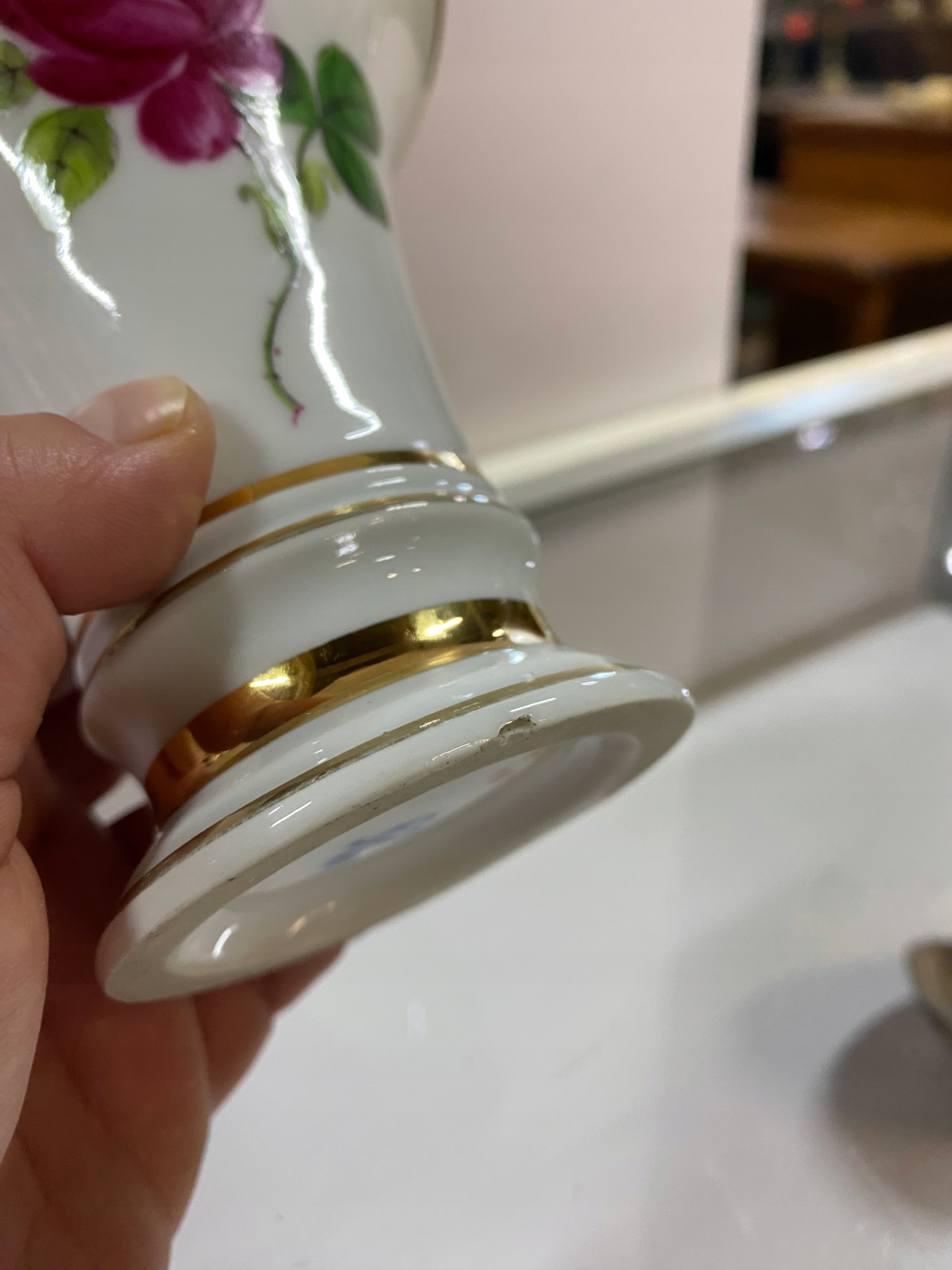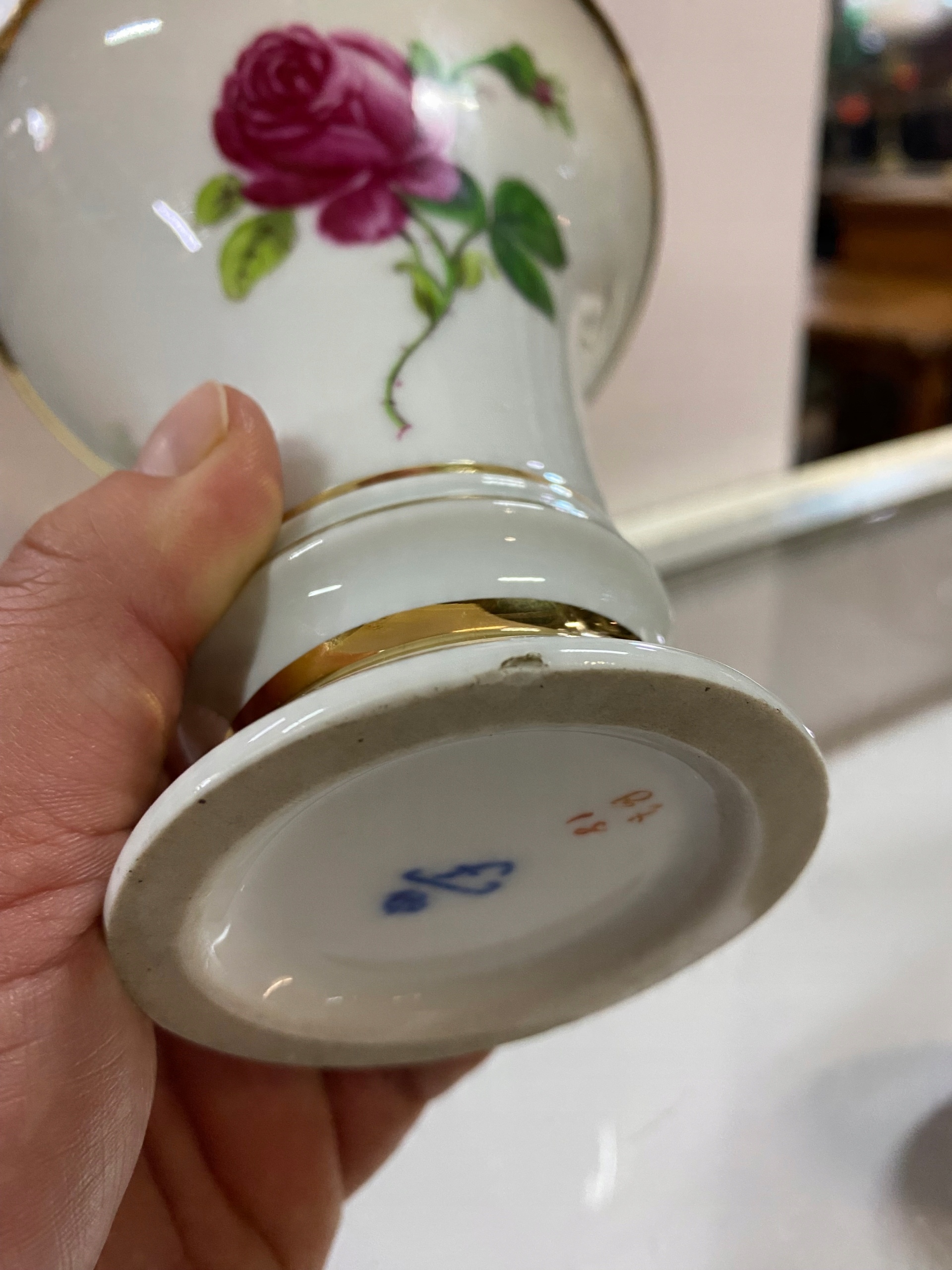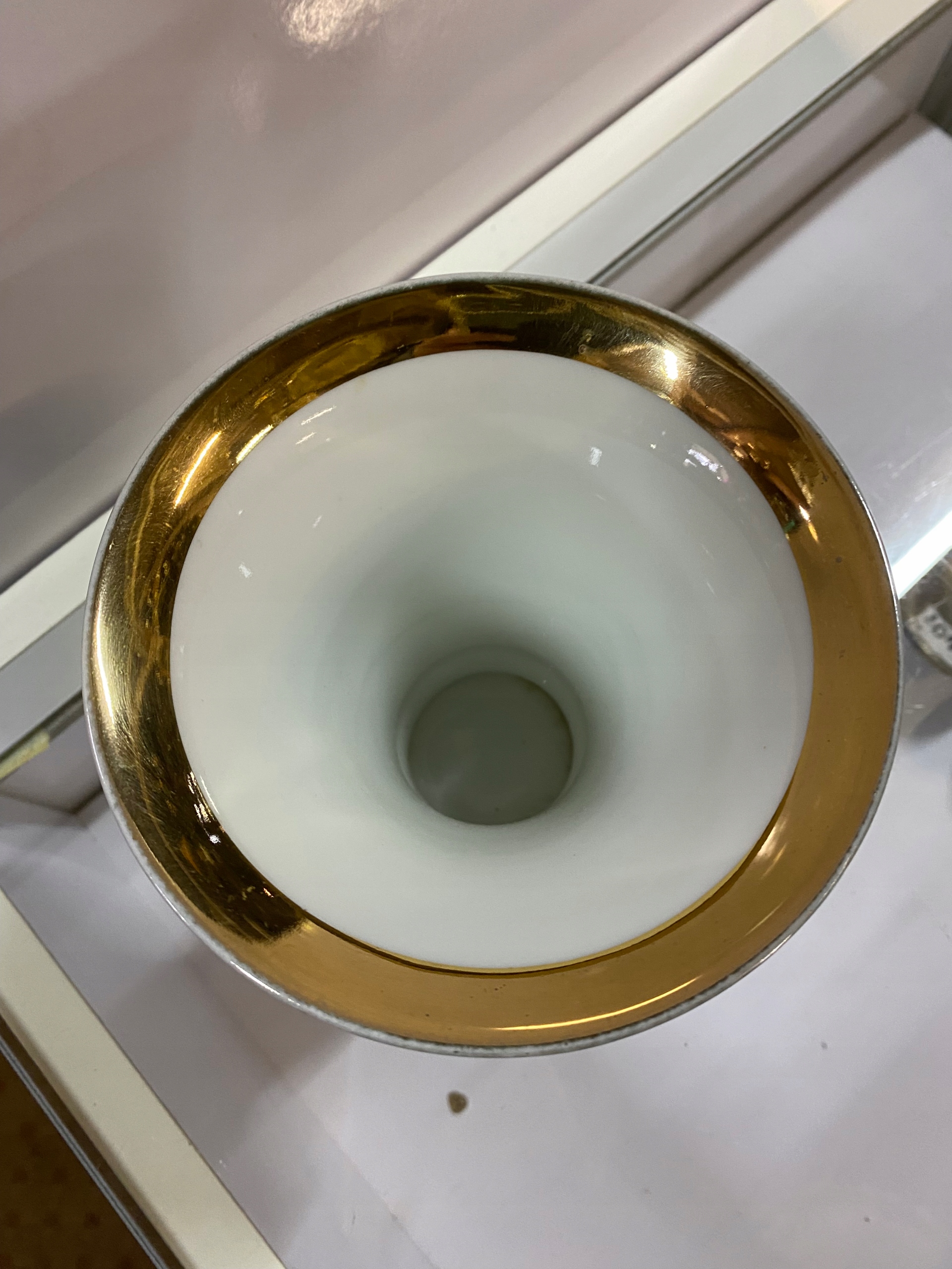 Красива ваза-кратер Фюрстенберга 1930-х років із золотими та трояндовими аксесуарами