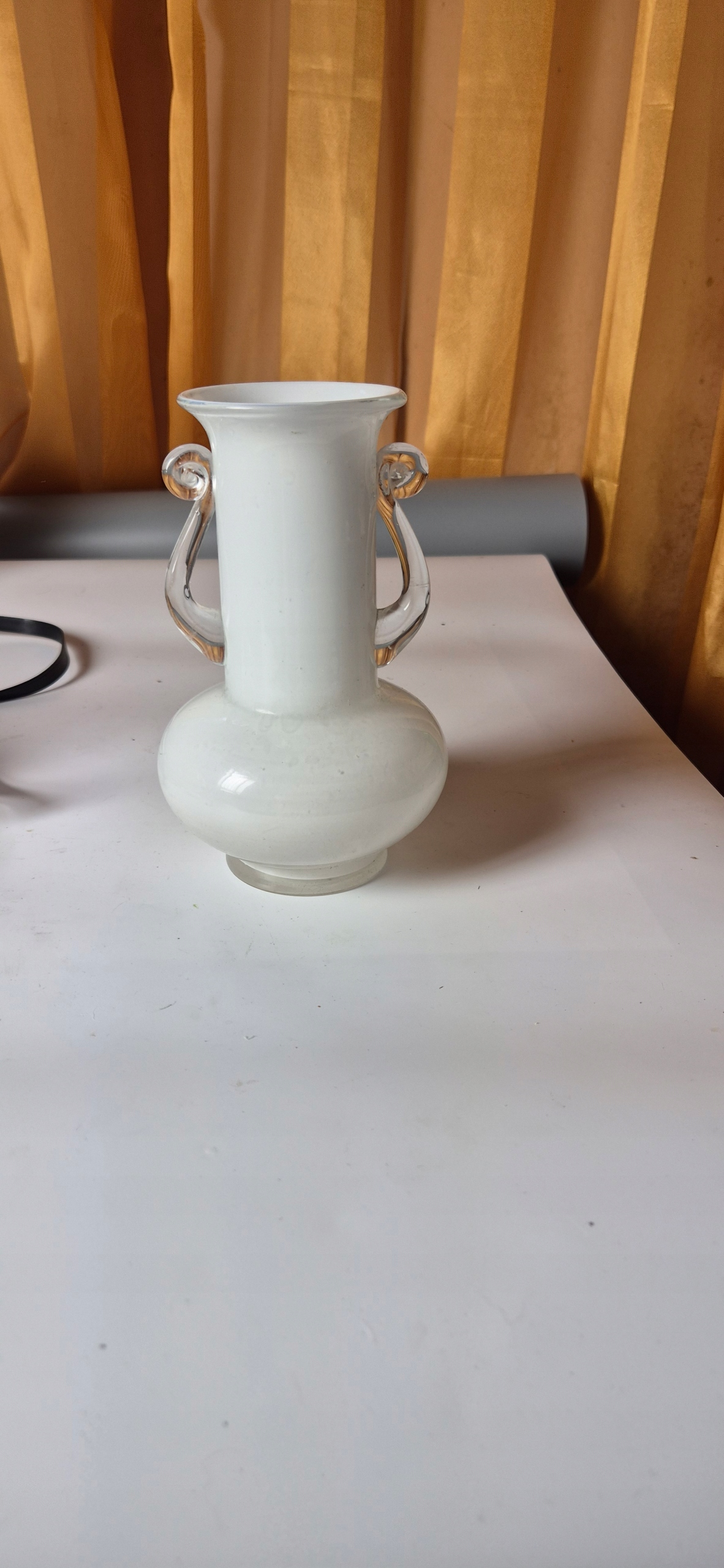 Красивая белая стеклянная ваза от Huta Tarnowiec J. Słuczan-orkusz