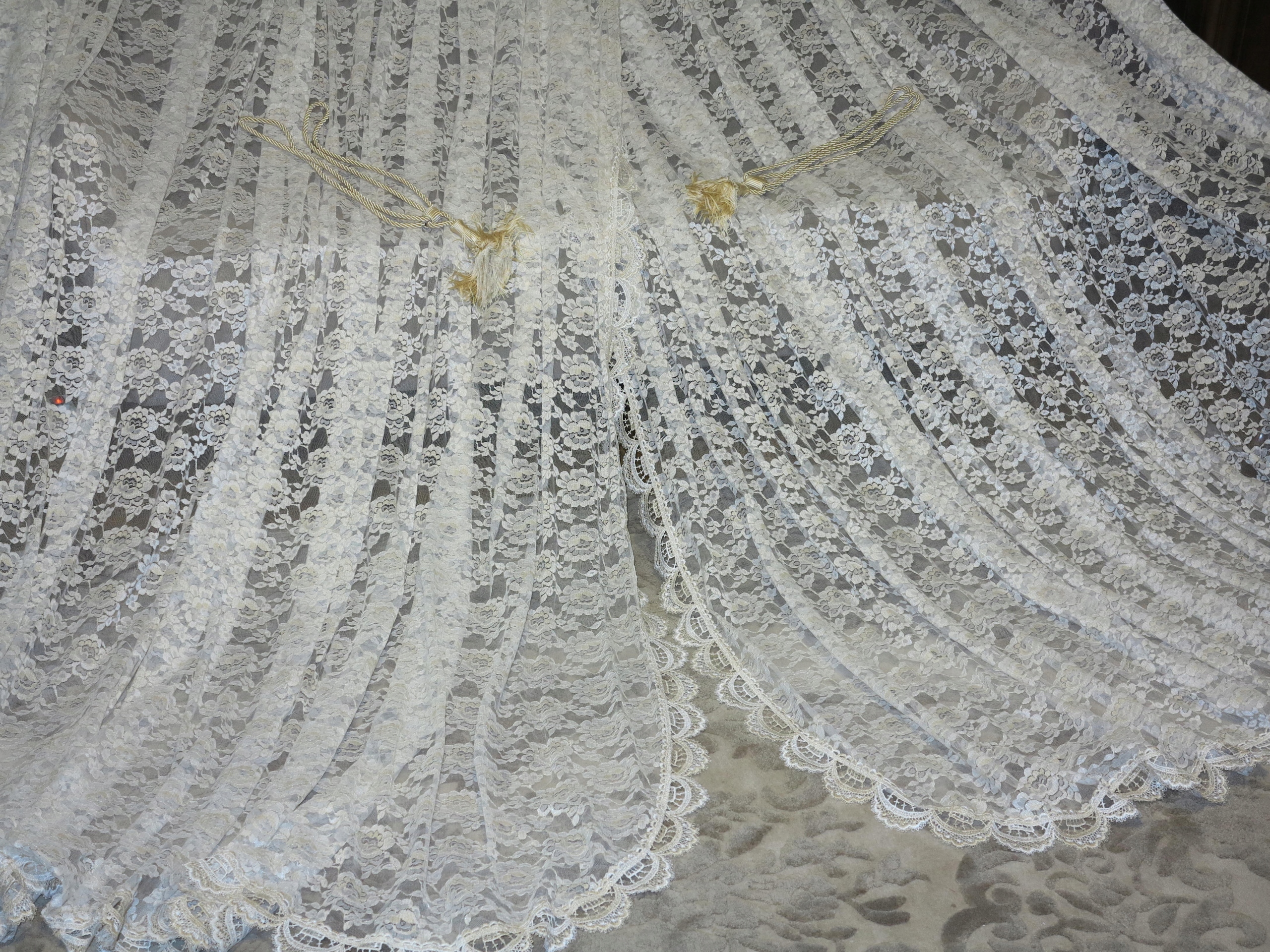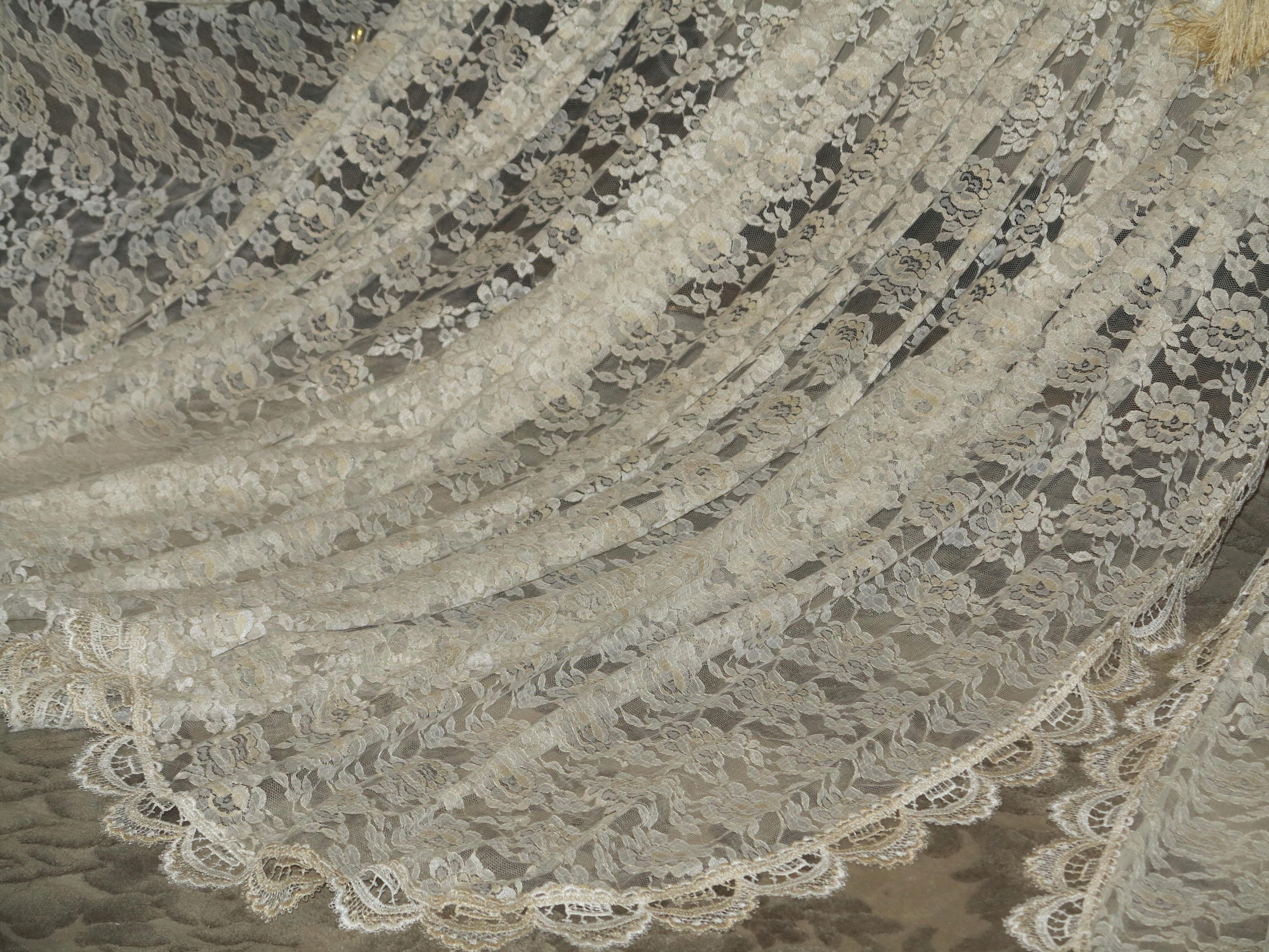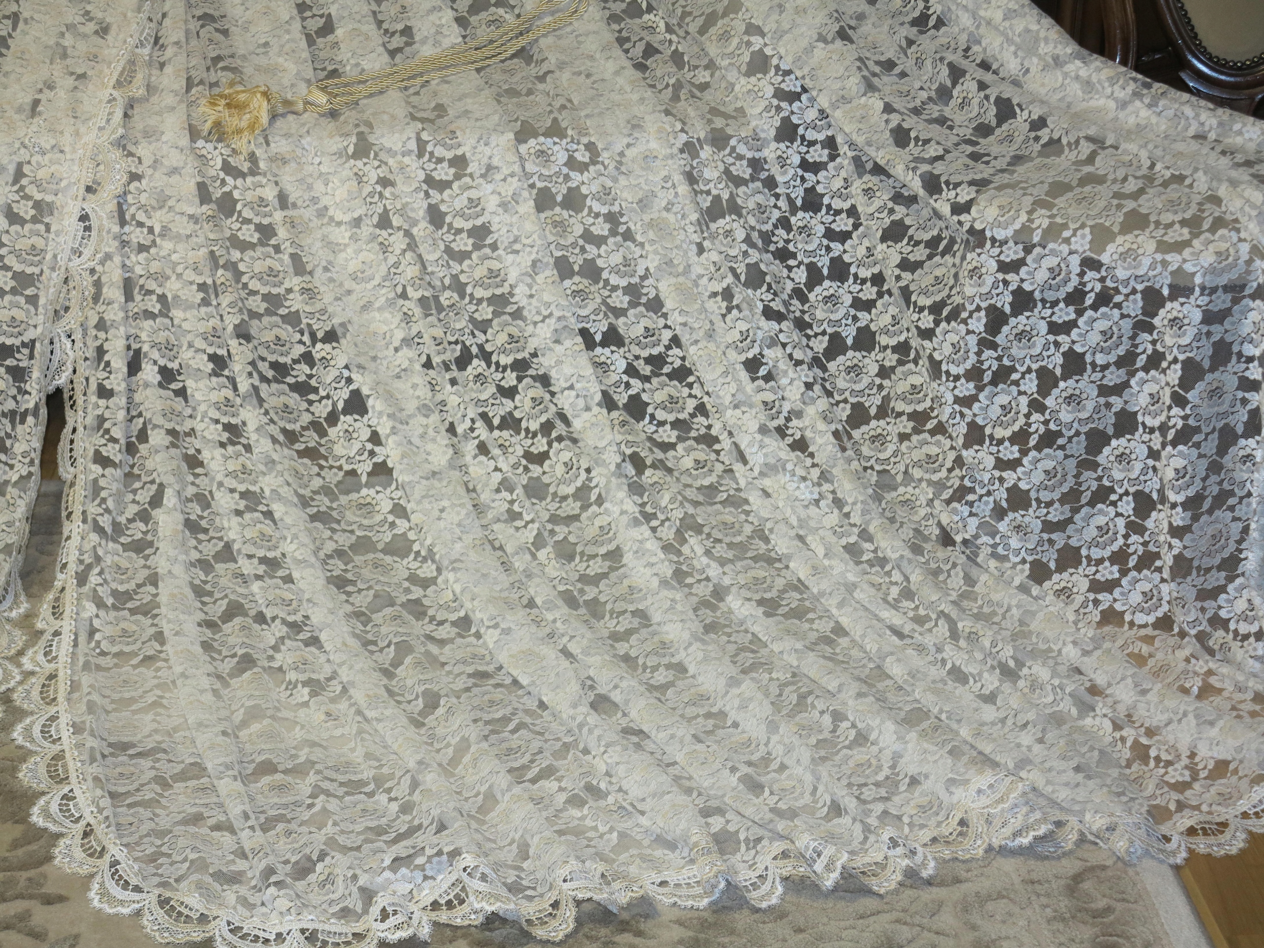 КРАСИВУЮ РОМАНТИЧЕСКУЮ ОГРОМНУЮ НЕМЕЦКУЮ КРУЖЕВНУЮ ШТОРУ, СОСТОЯЮЩУЮ ИЗ ДВУХ ОТДЕЛЬНЫХ ПОЛОВИН, КОТОРЫЕ БУДУТ СТАВИТЬСЯ ПО БОКАМ. ВНУТРЕННИЕ КРАЯ ЗАГРУГЛЕНЫ И ОТДЕЛЕНЫ ГИППИУРКОЙ. ПРОЧНОЕ, ПРОЧНОЕ, КАЧЕСТВЕННОЕ КРУЖЕВО. ЖЕМЧУЖНО-БЕЛЫЙ И СВЕТЛО-БЕЖЕВЫЙ ЦВЕТА.