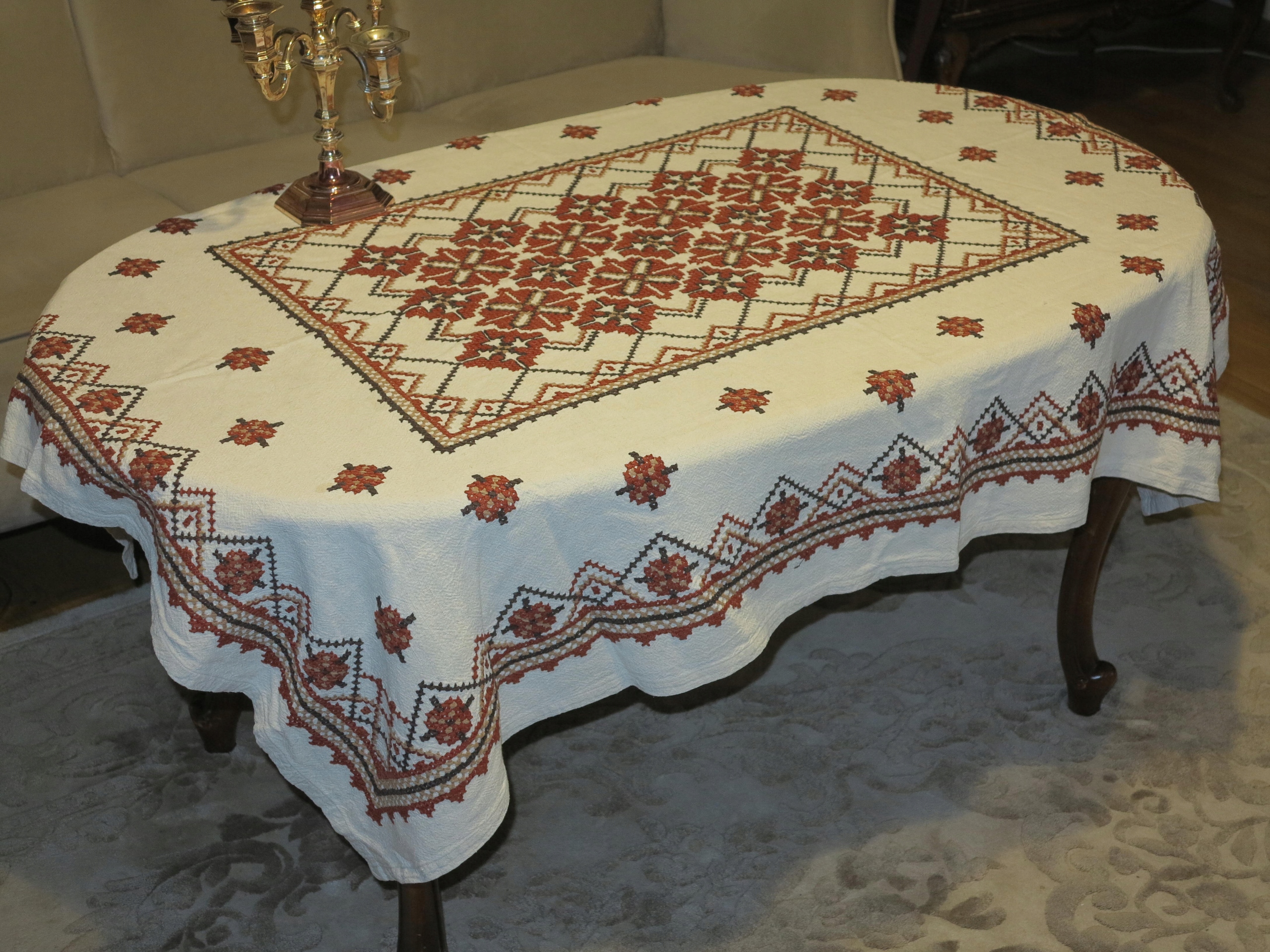 КРАСИВА ВІКОВА СТИЛЬНА ЛЛЯНА СКАТЕРТИНА РУЧНА ТОВСТА ВИШИВКА ХРЕСТИКОМ 149/123