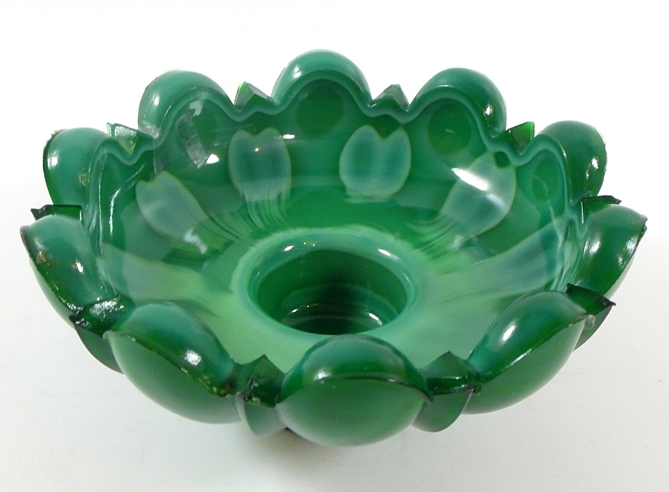 Красивый, старый подсвечник- малахитовое стекло