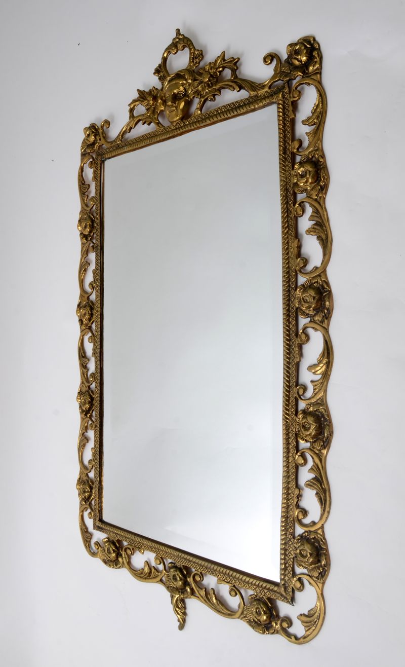 Красивое стильное зеркало в декорированной латунной раме, Испания, 1950-е годы