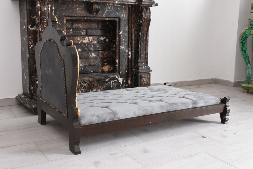 Уникальная лежанка для собаки в виде элегантного дивана в стиле барокко. Изготовленная из резного дерева и обитая высококачественным материалом, она сочетает в себе комфорт для вашего питомца с роскошным видом, который украсит любой интерьер. Это предмет мебели, который подчеркивает характер стильной обстановки и в то же время обеспечивает вашему питомцу комфортное место для отдыха.