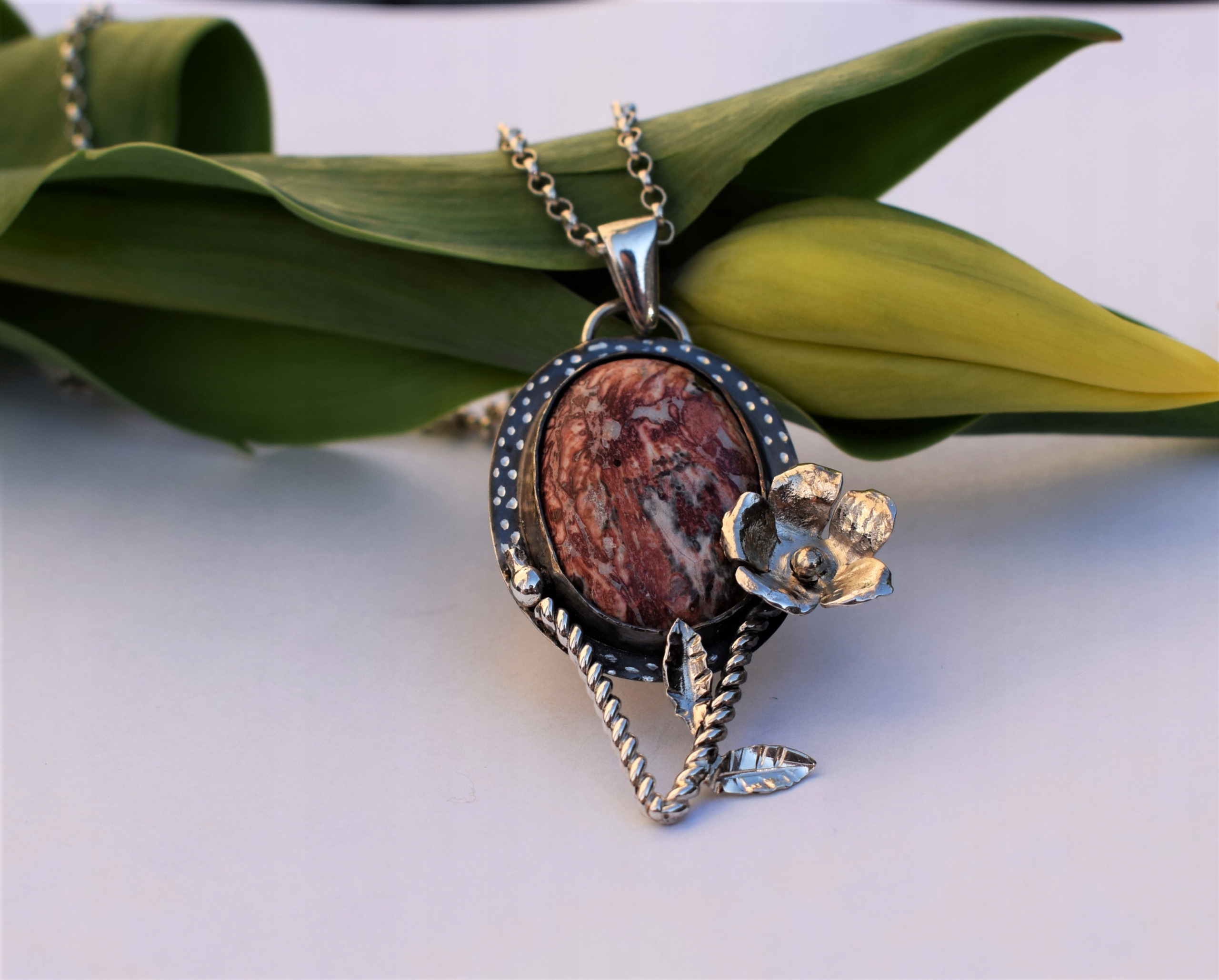✦ Кулон из серебра 925 пробы ручной работы с цветочным мотивом в комплекте с цепочкой.