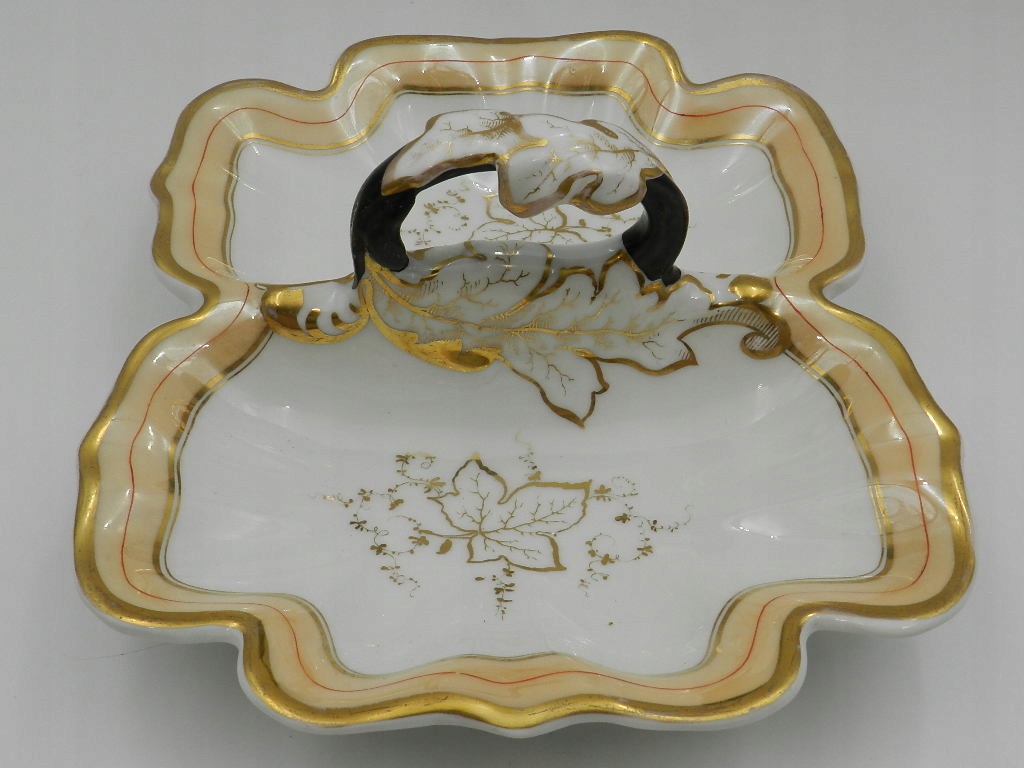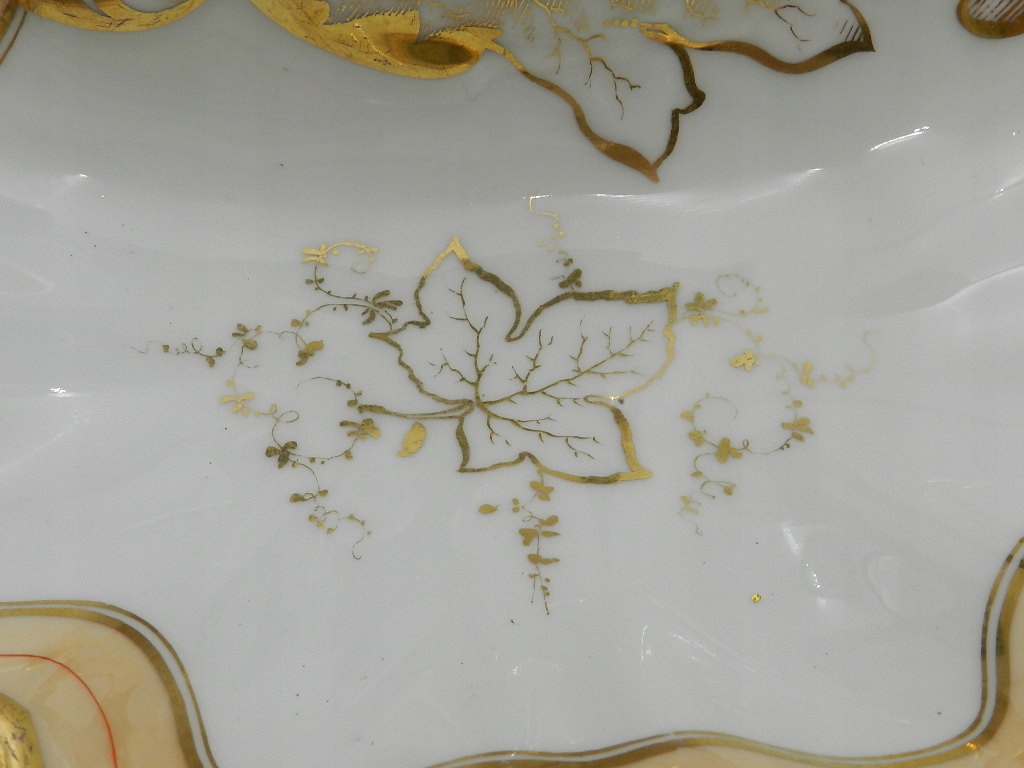 Украшена широкой полосой абрикосовой живописи с нежной красной полосой, окруженной густой позолотой.