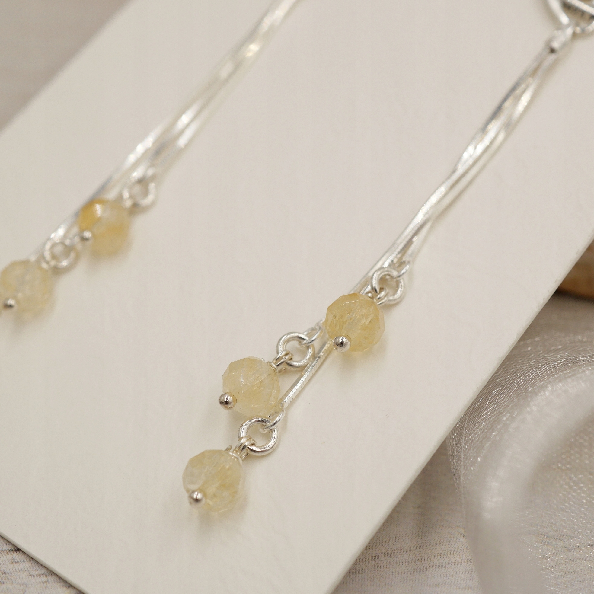 Красиві, довгі, срібні сережки-цитрин 925 проби