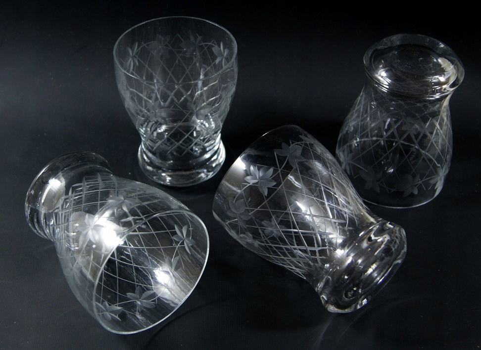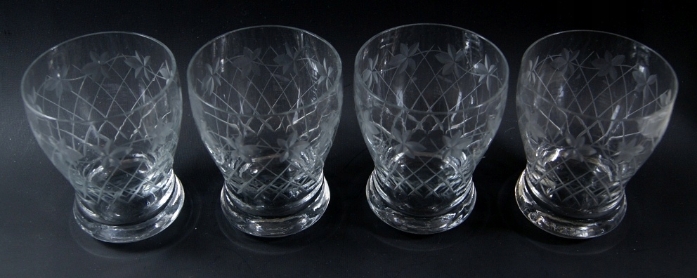 Красивые, старые очки изготовлены из бесцветного хрустального стекла, декор полностью земли, канюлированного стекла, набор из 4 штук.