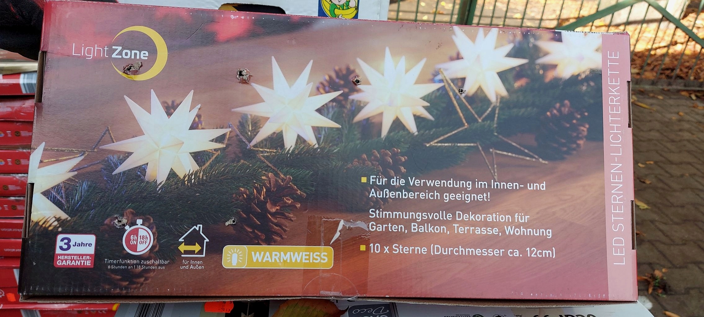 КРАСИВІ 10 ШТ. ЗІРКИ IP44 БІЛИЙ ТАЙМЕР 7,5 м 12 СМ
