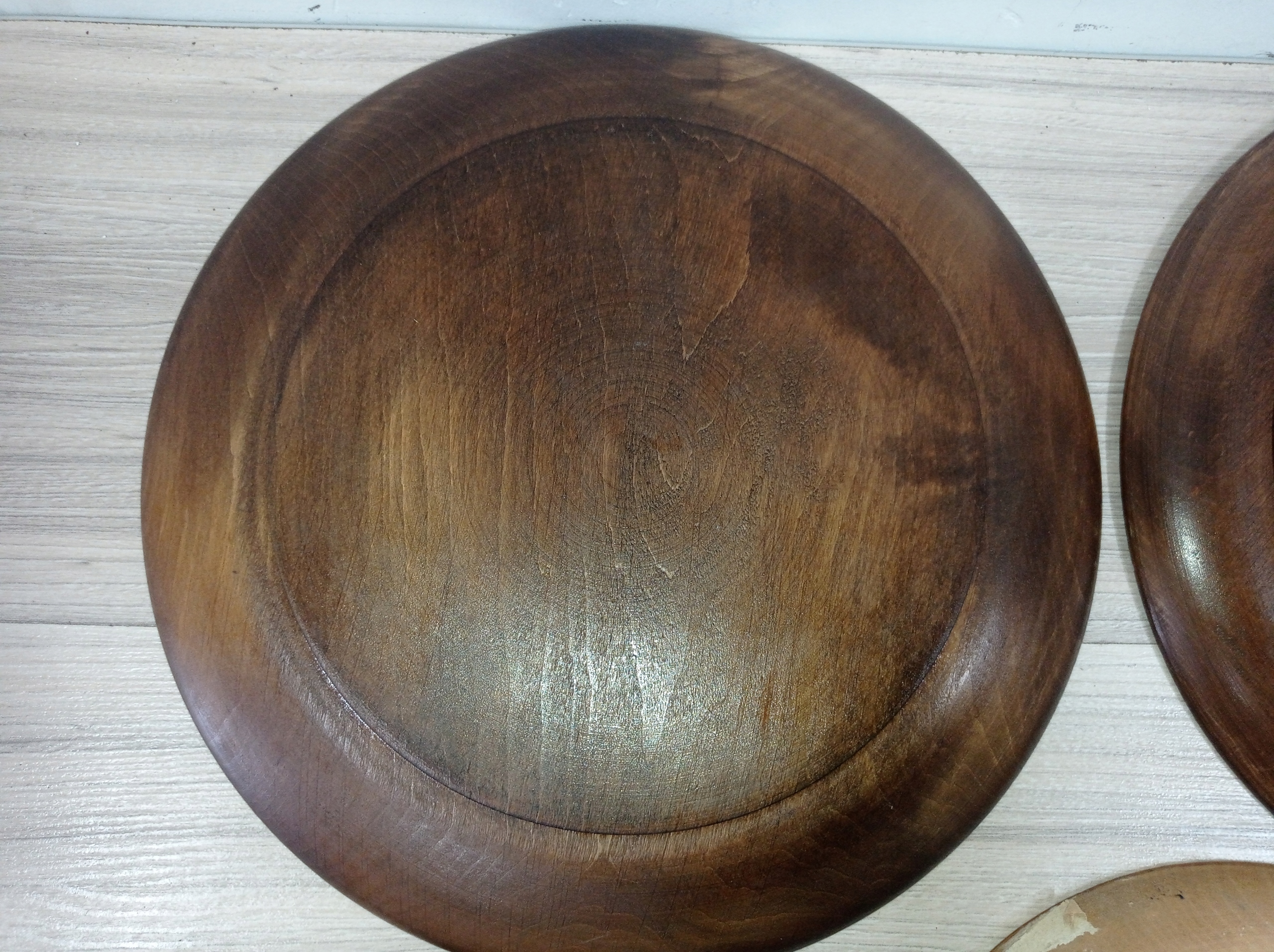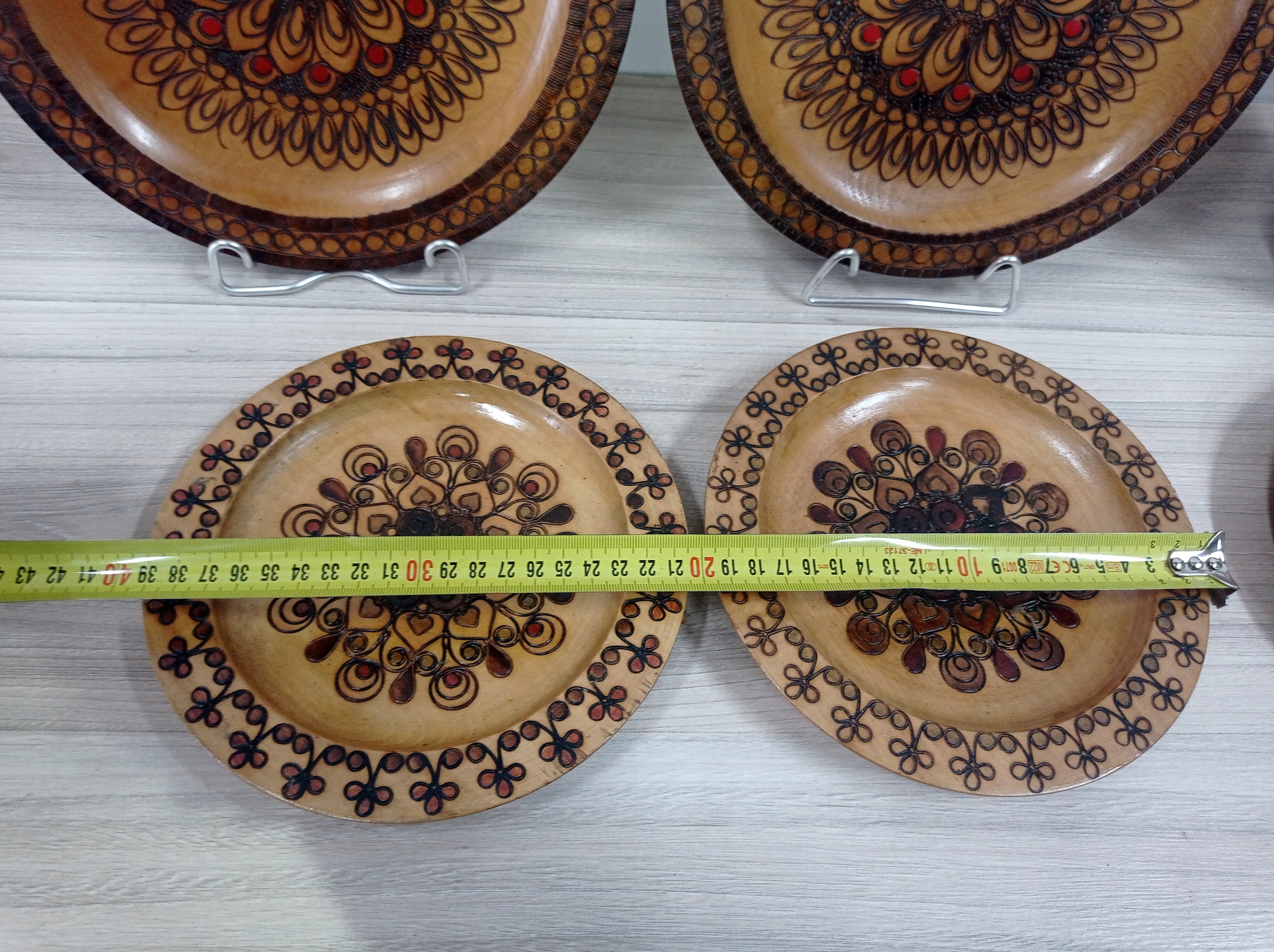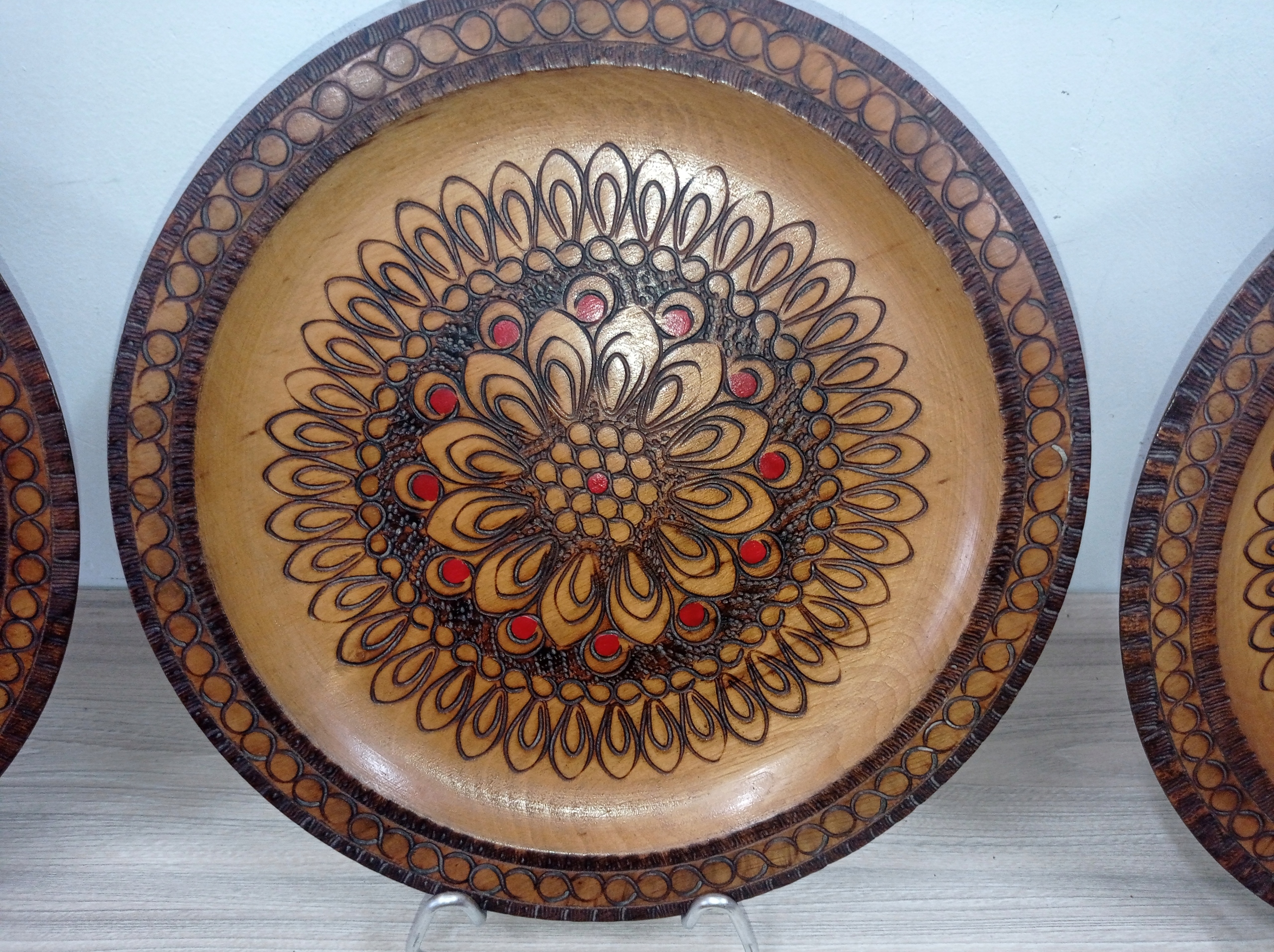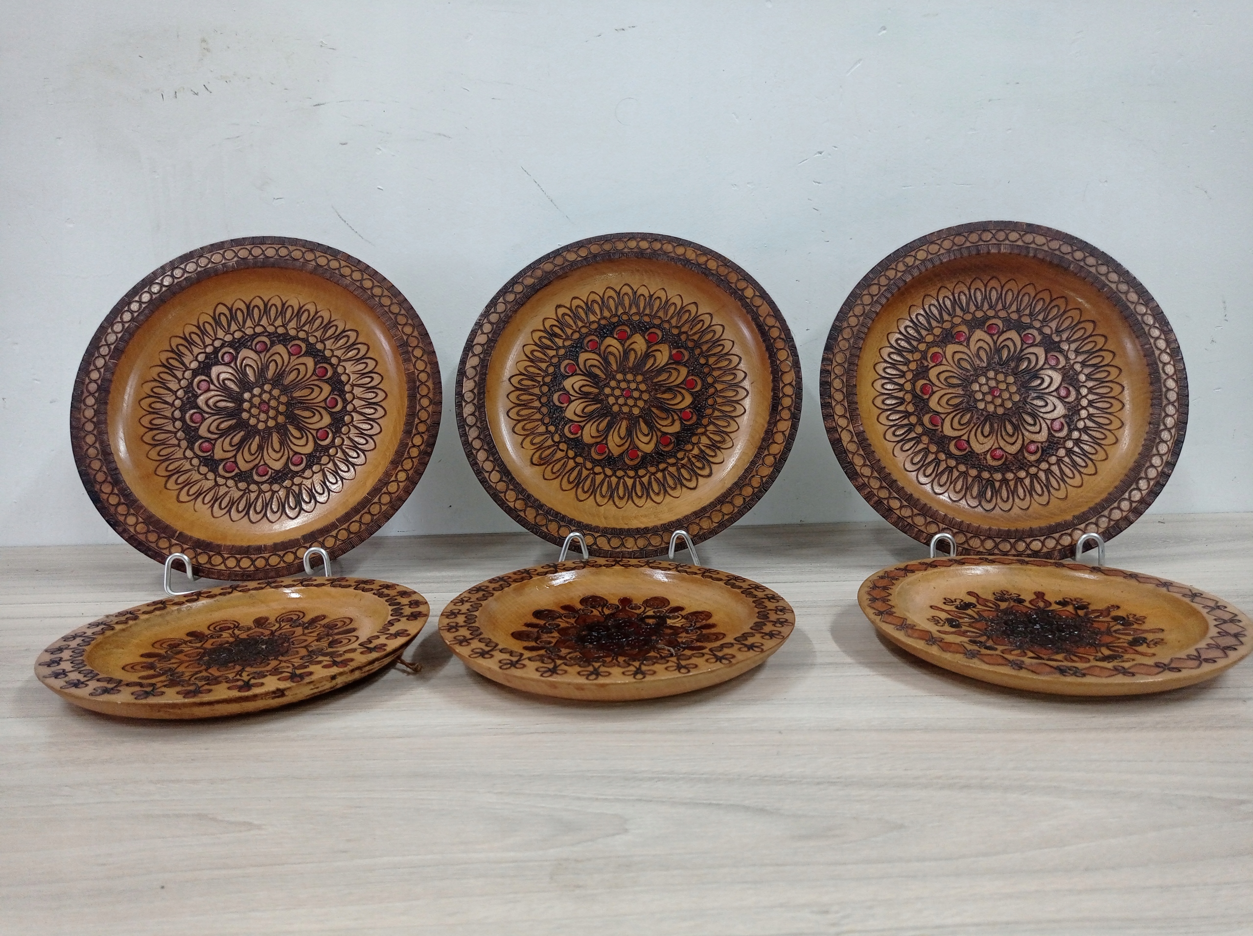 Красивые деревянные коллекционные тарелки с подставками - 7 штук