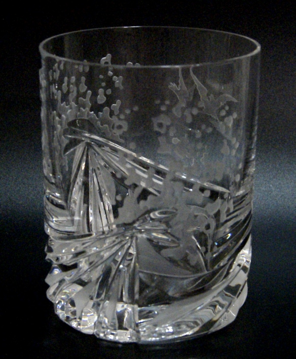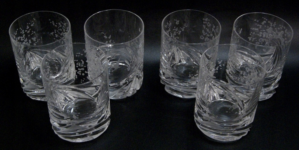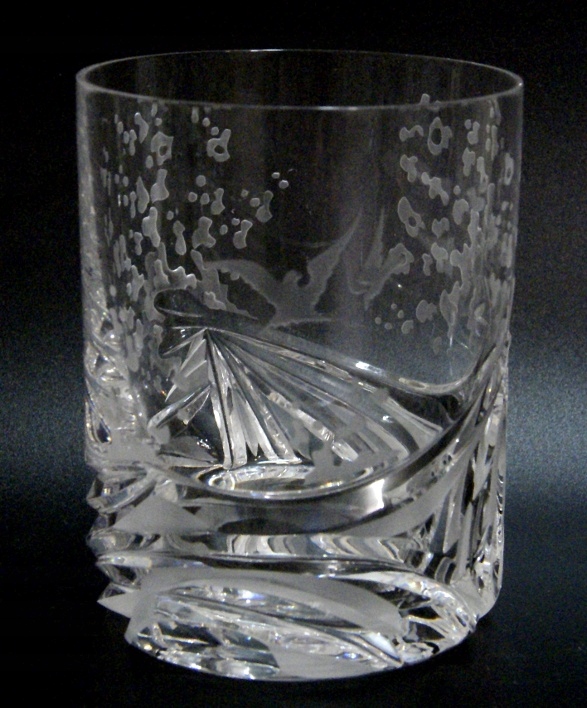 Красивые очки, массивные, изготовлены из бесцветного хрустального стекла, украшенного глубоким перевариваемым рисунком.