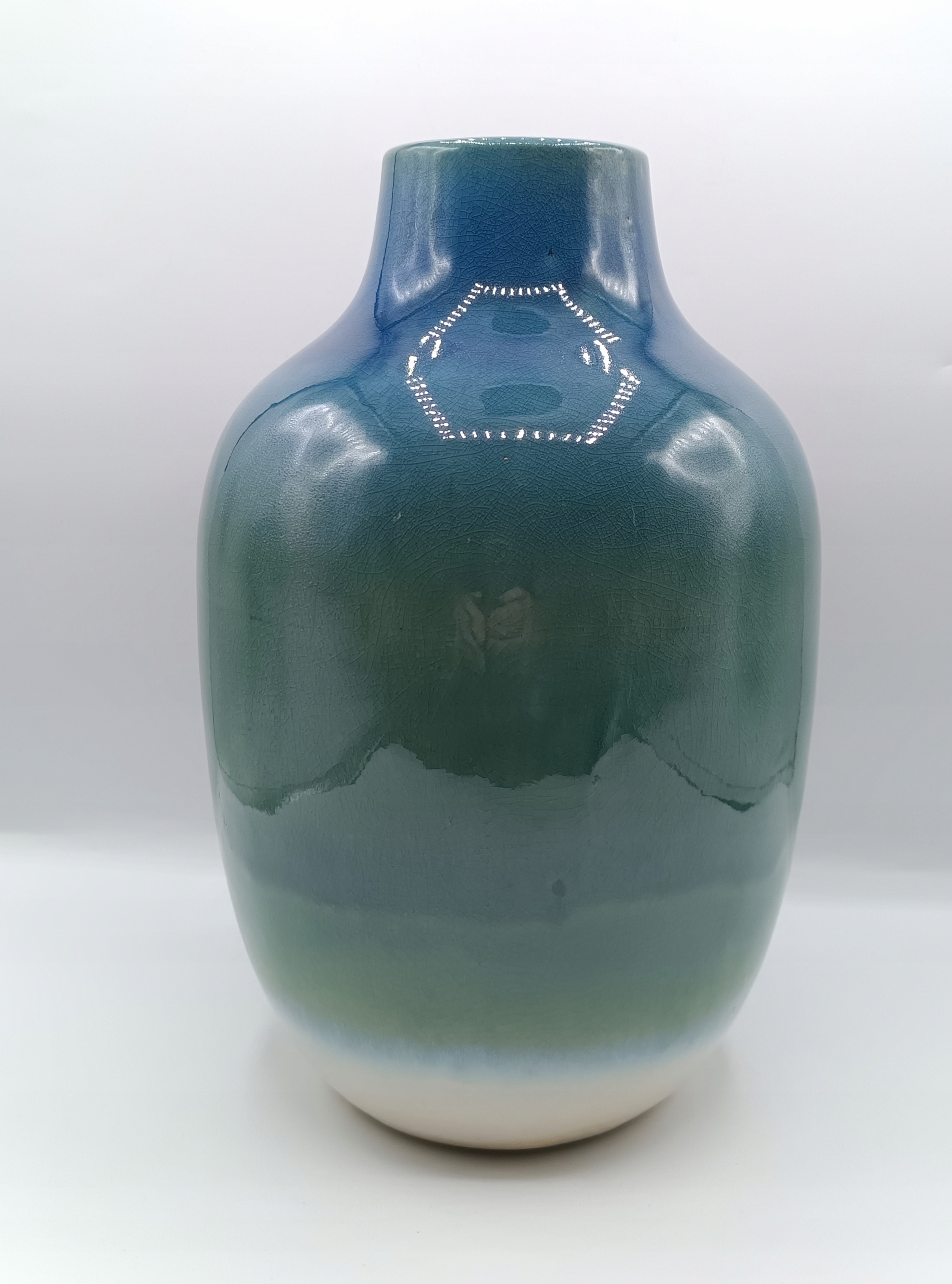 Керамика Ваза Красиво подключенные цвета, бежевый бежевый переходит в бирюзовую, море и синий - это прекрасно