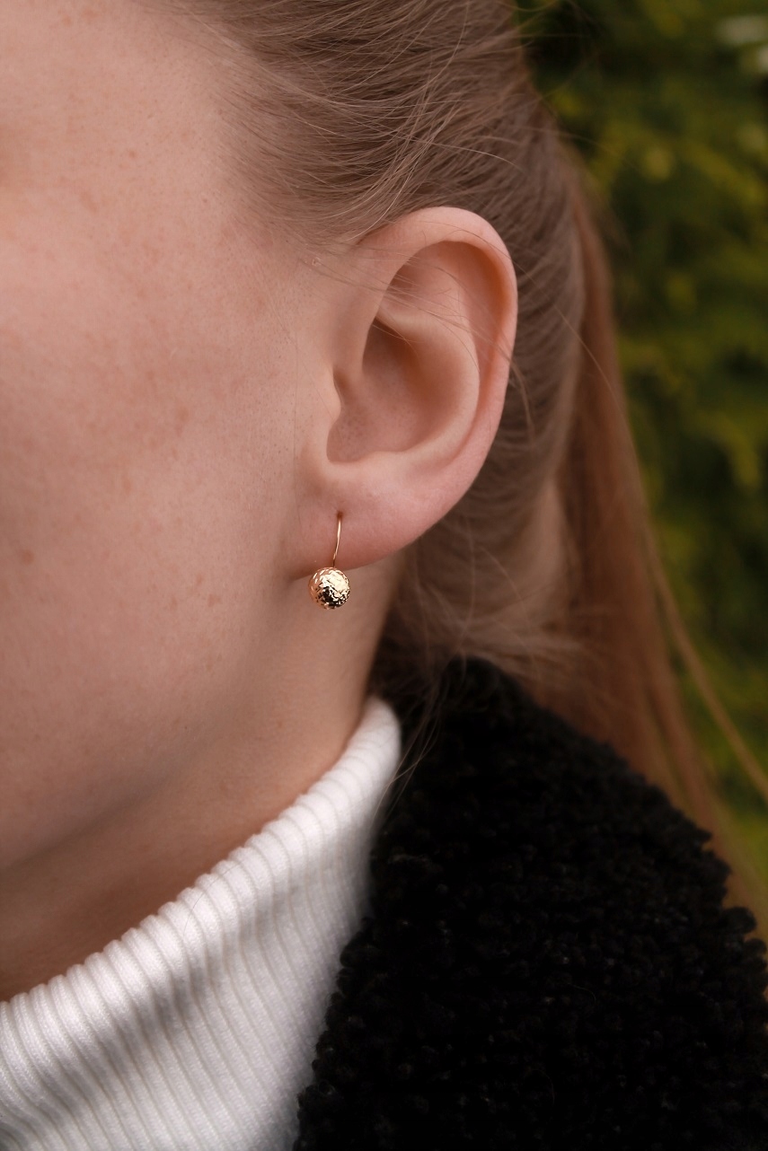 Красивые золотые алмазные серьги подвесные шарики 7 мм 14 кт шарики