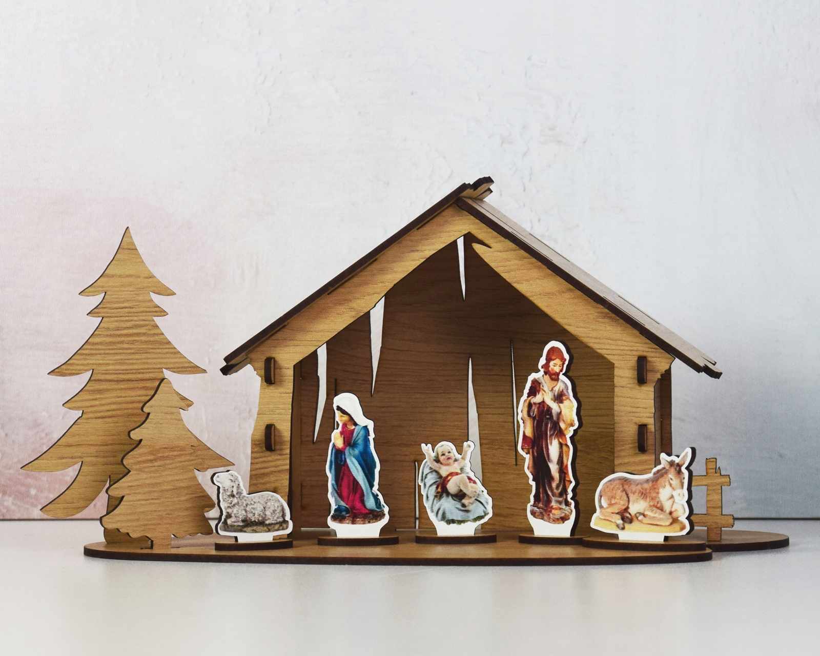 Красивий дерев'яний вертеп зі стійкими фігурками