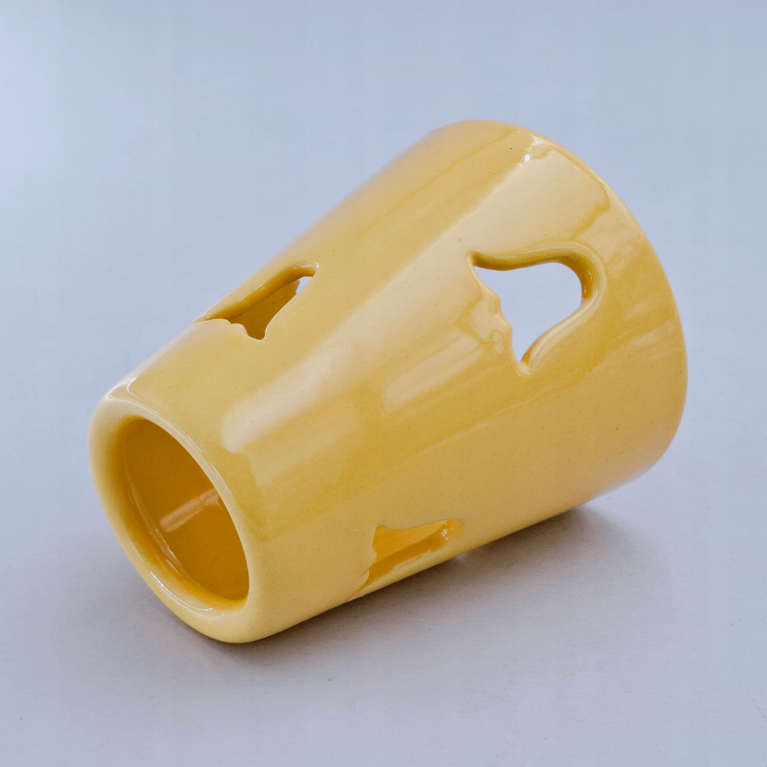 КРАСИВА КЕРАМІЧНА ПОКРИТА, ЖОВТА ПІДСТАВКА СВІЧНИКА, ЛІХТАР-ТЮЛЬПАНИ