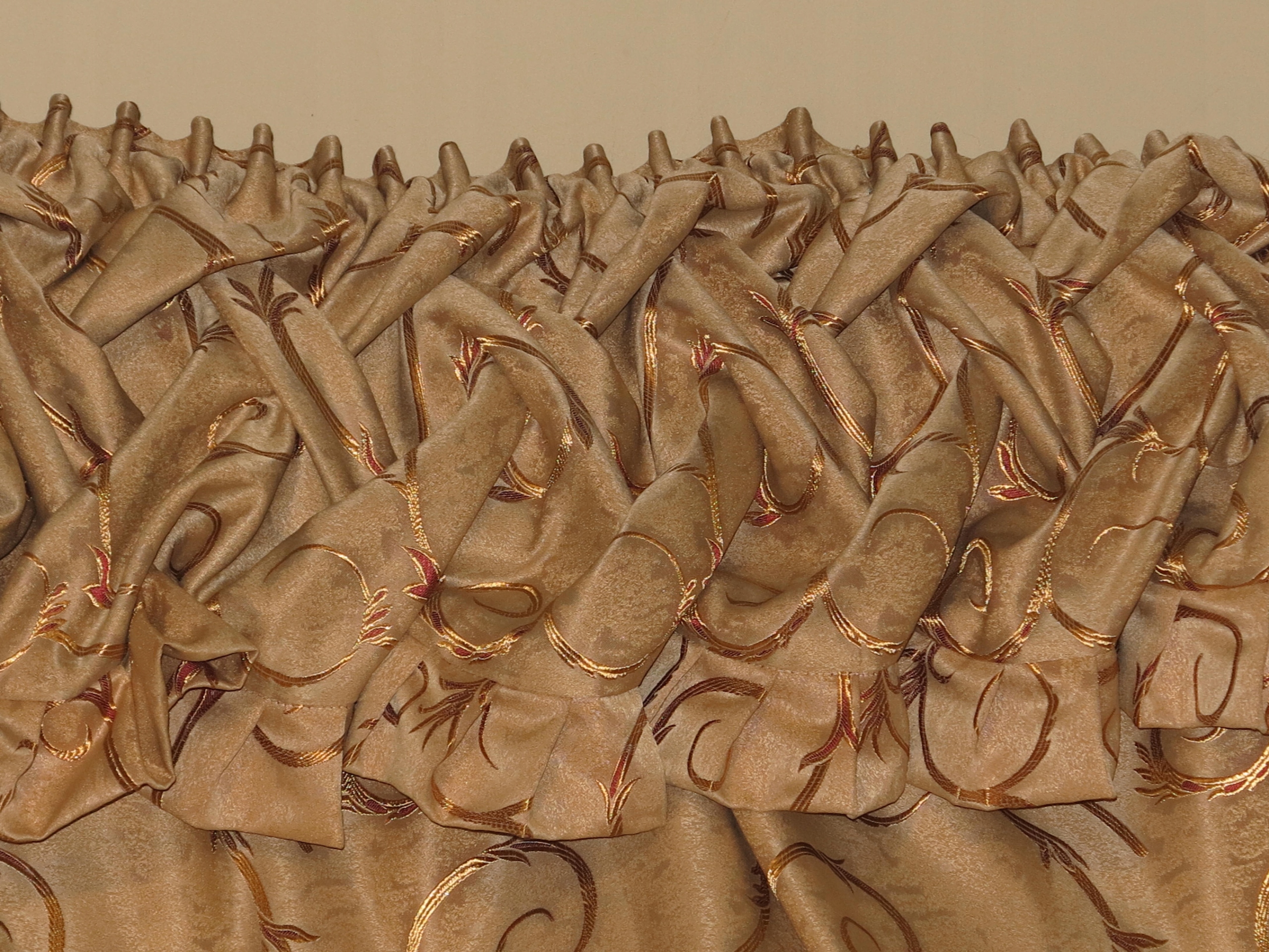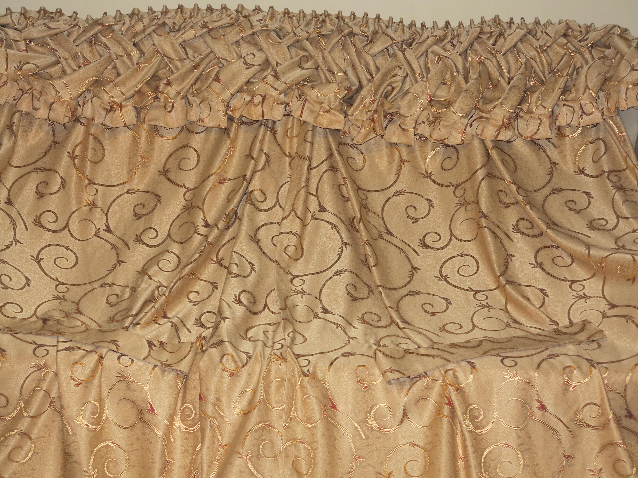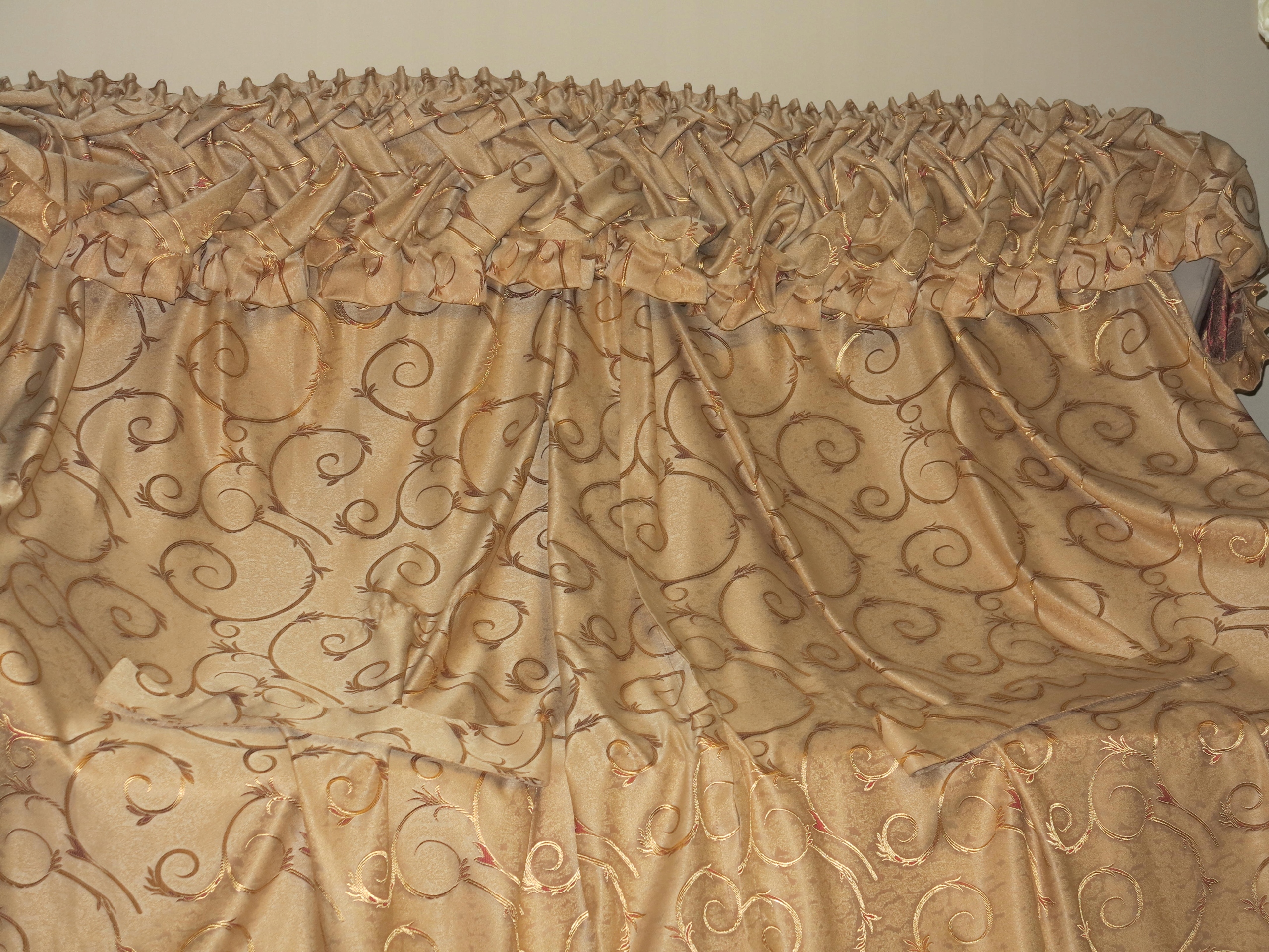 ШТОРЫ И ЛАМБРЕКЕН НА РЕБОЧНОЙ ЛЕНТЕ. ЛАМБРЕКЕН НАСТАВЛЕН, НИЖЕ ПРИВЕДЕНЫ РАЗМЕРЫ ЛАМБРЕКЕНА.