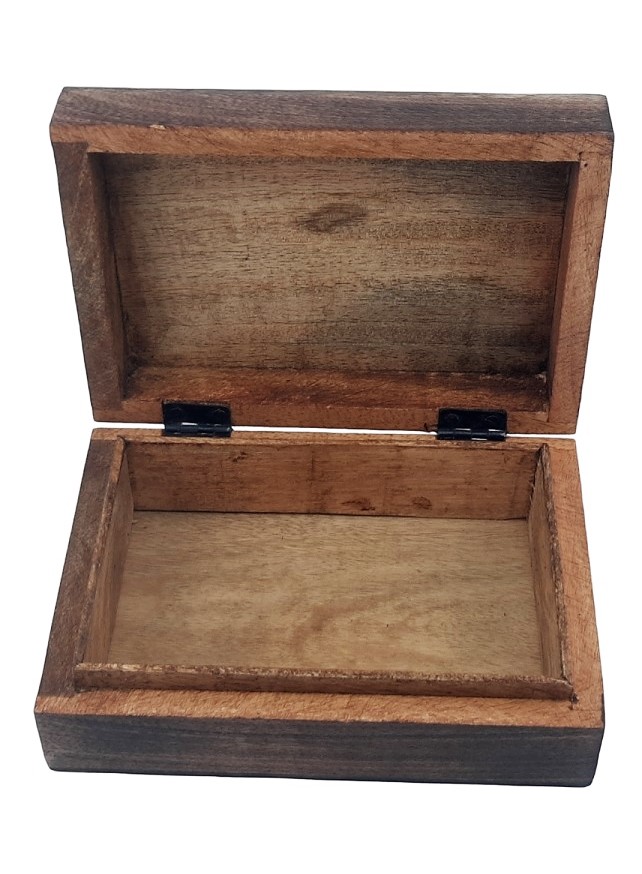Шкатулка темно-коричневого цвета с легкими потертостями.