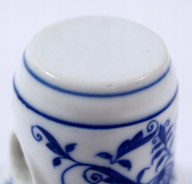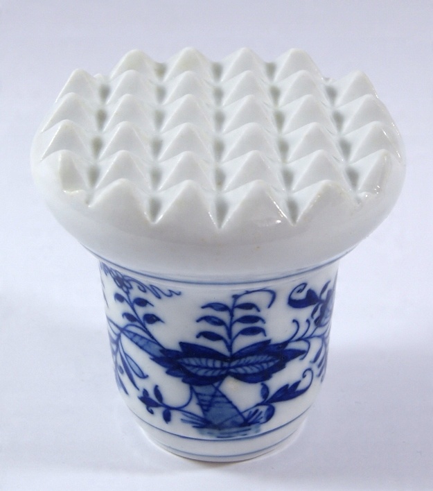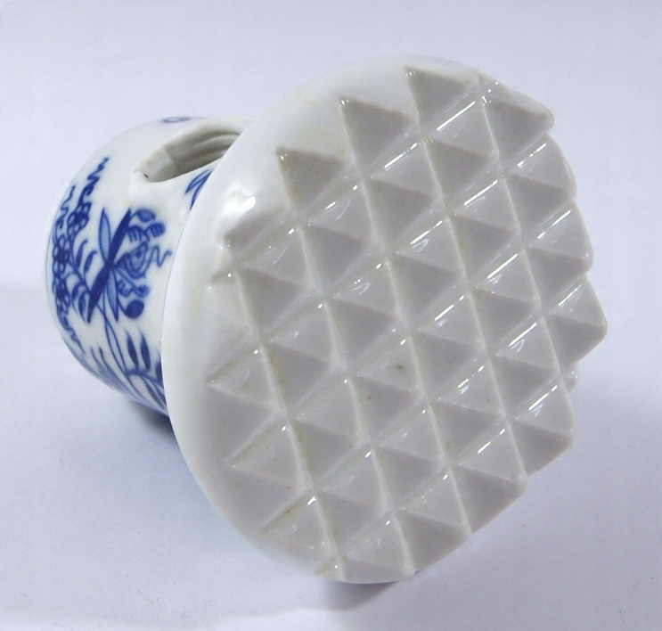 Красивый, массивный мясной пестик, он изготовлен из белого фарфора, украшенного кобальтовым луком.