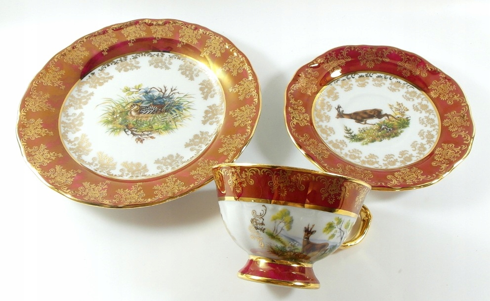 Красивый сервиз выполнен из белого фарфора, украшенного золотом и животными. В жизни приятнее - красивая вещь.