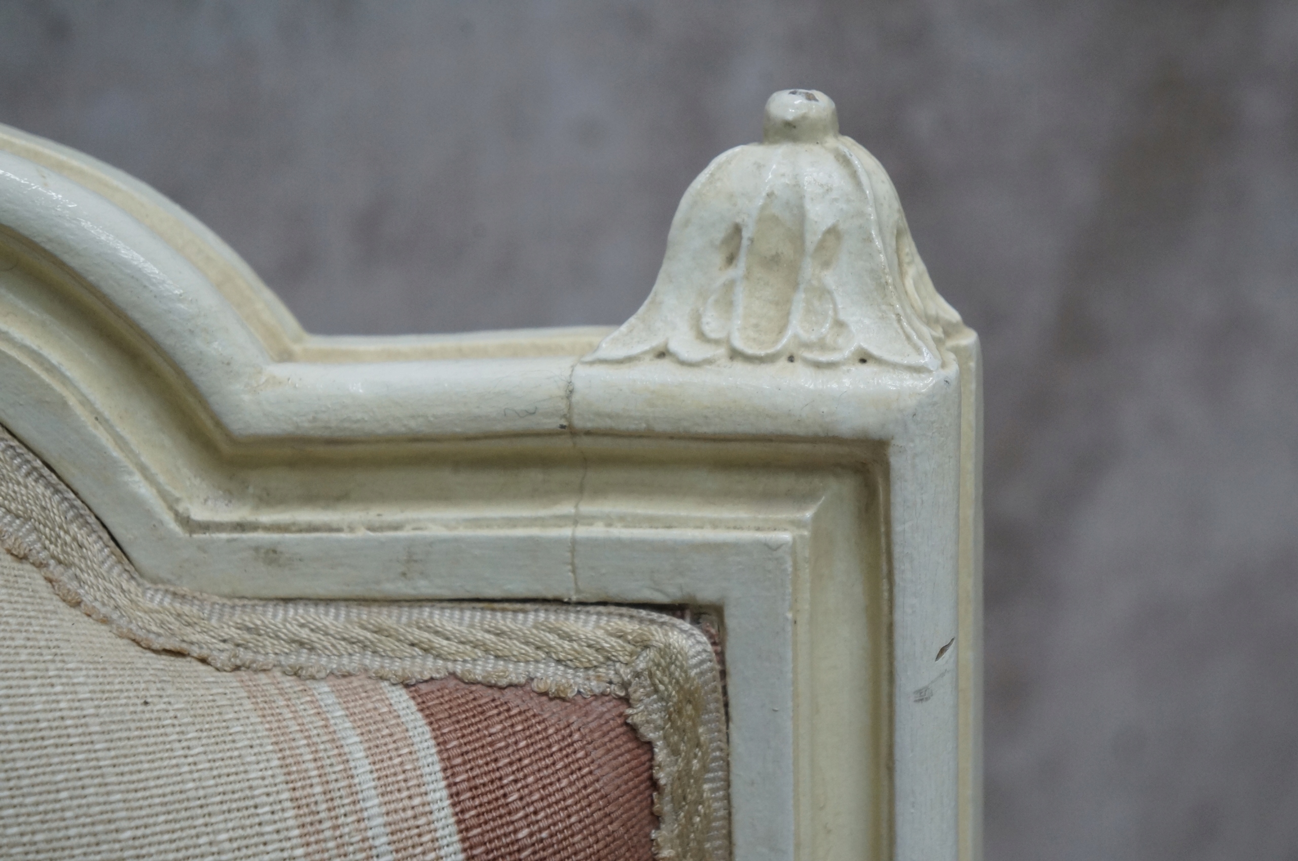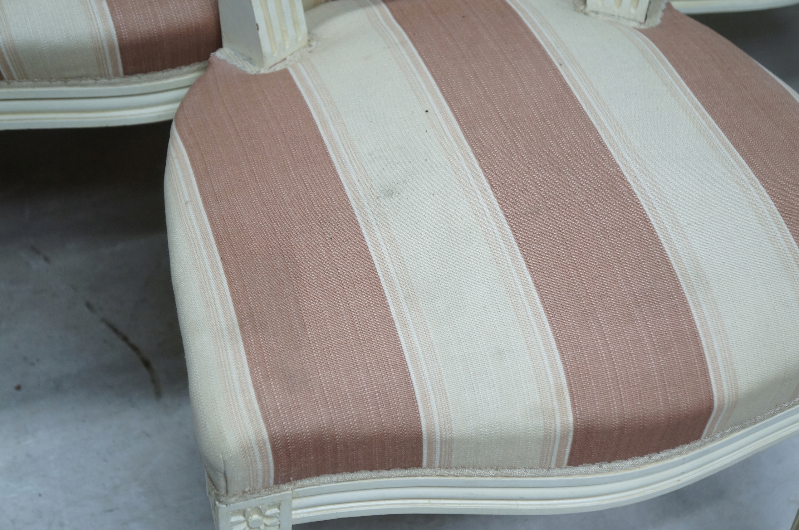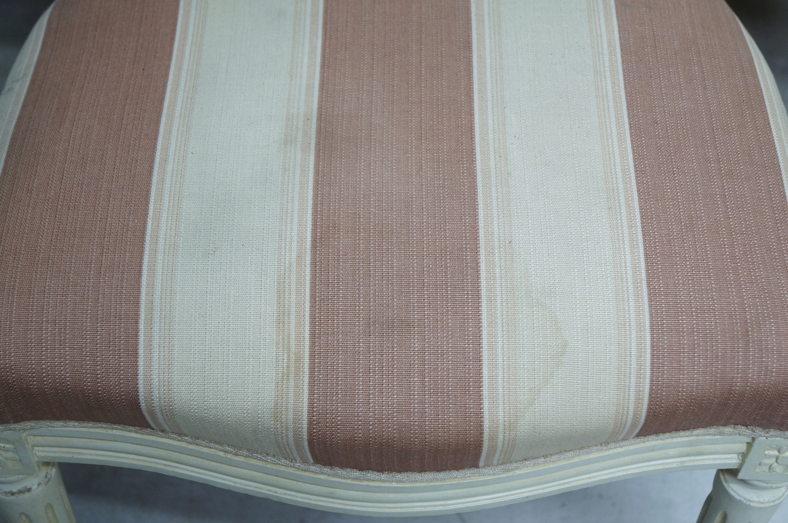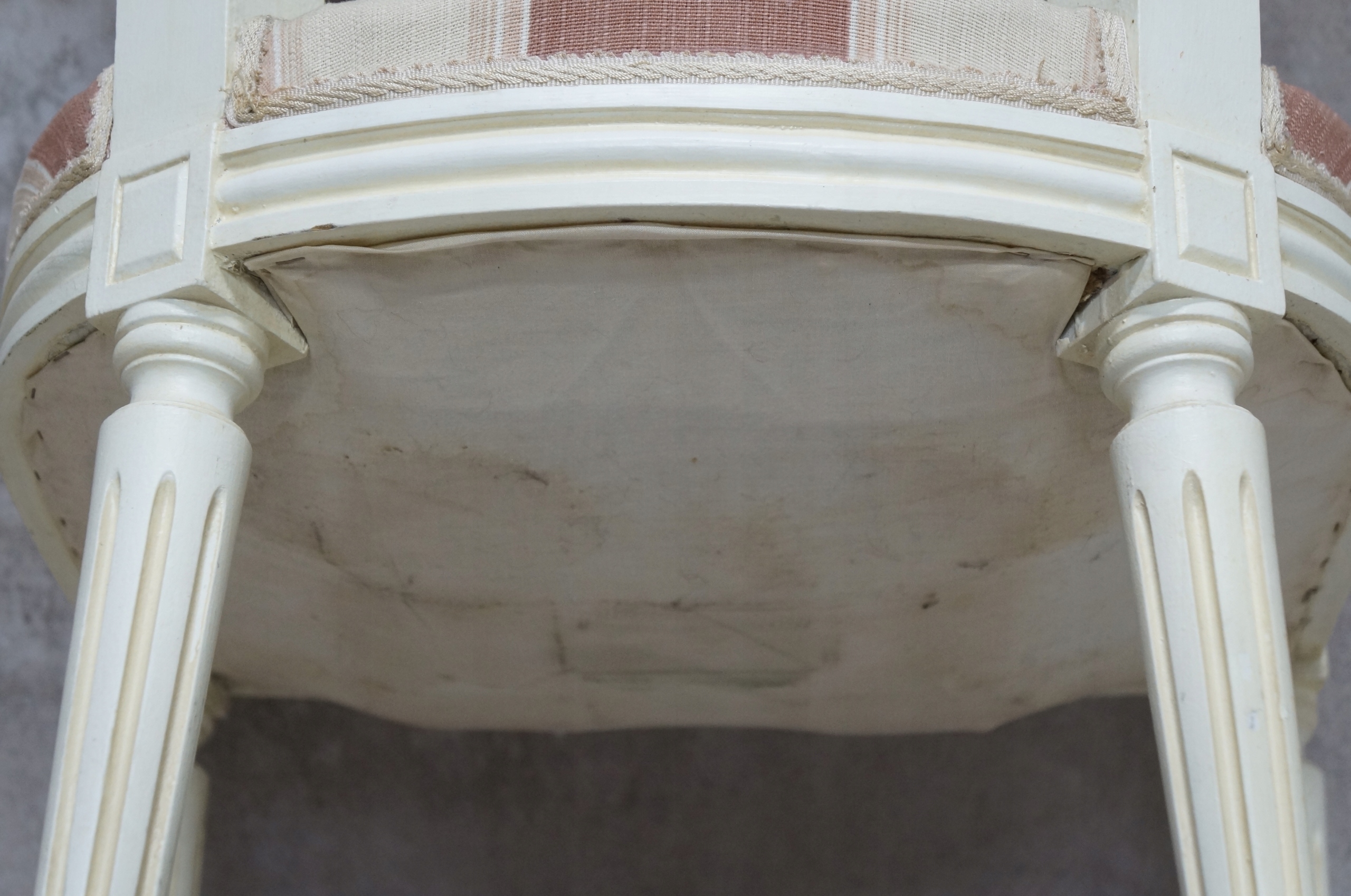 Обивка сидений с розовыми и бежевыми полосками грязная и пыльная.