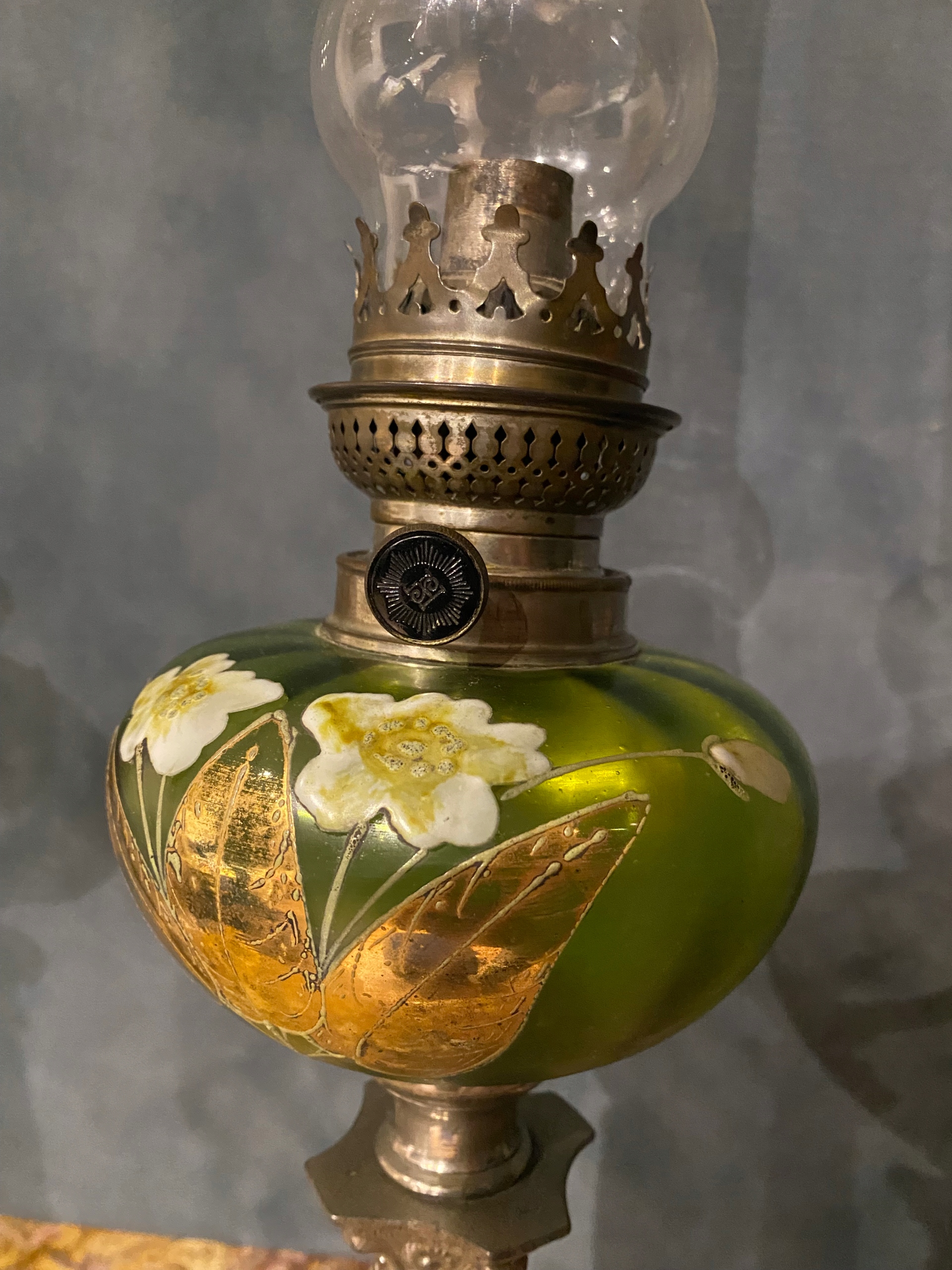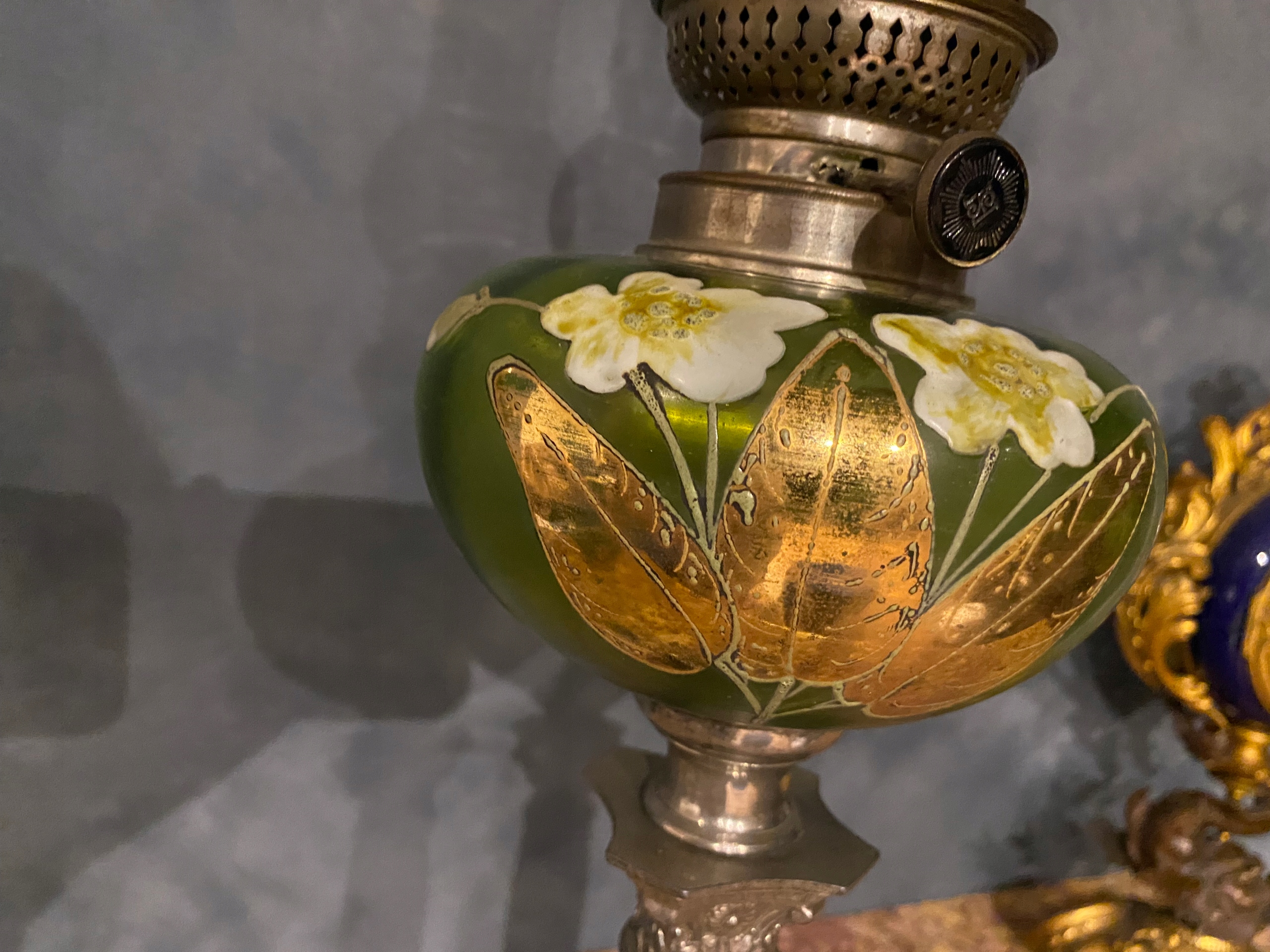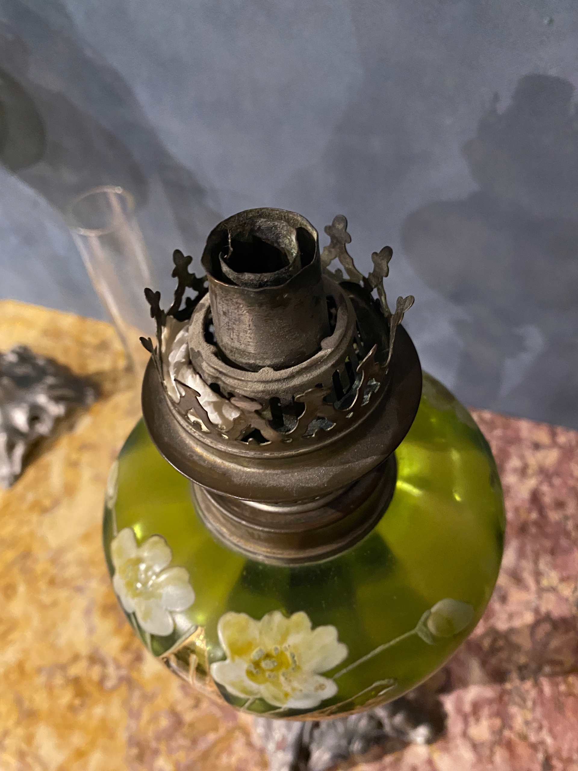 Красивая масляная лампа- окрашенный танк, Франция 19-го века.