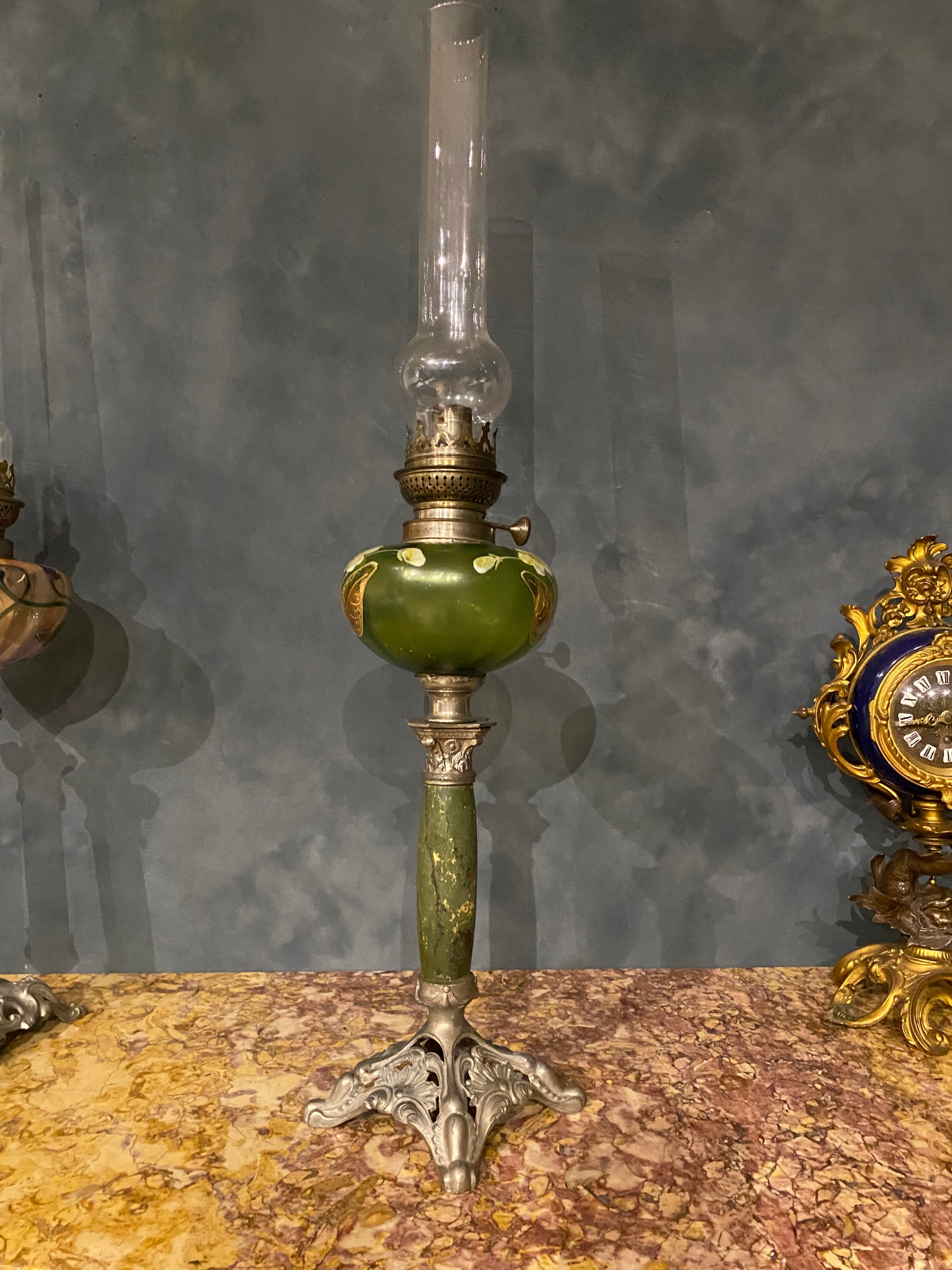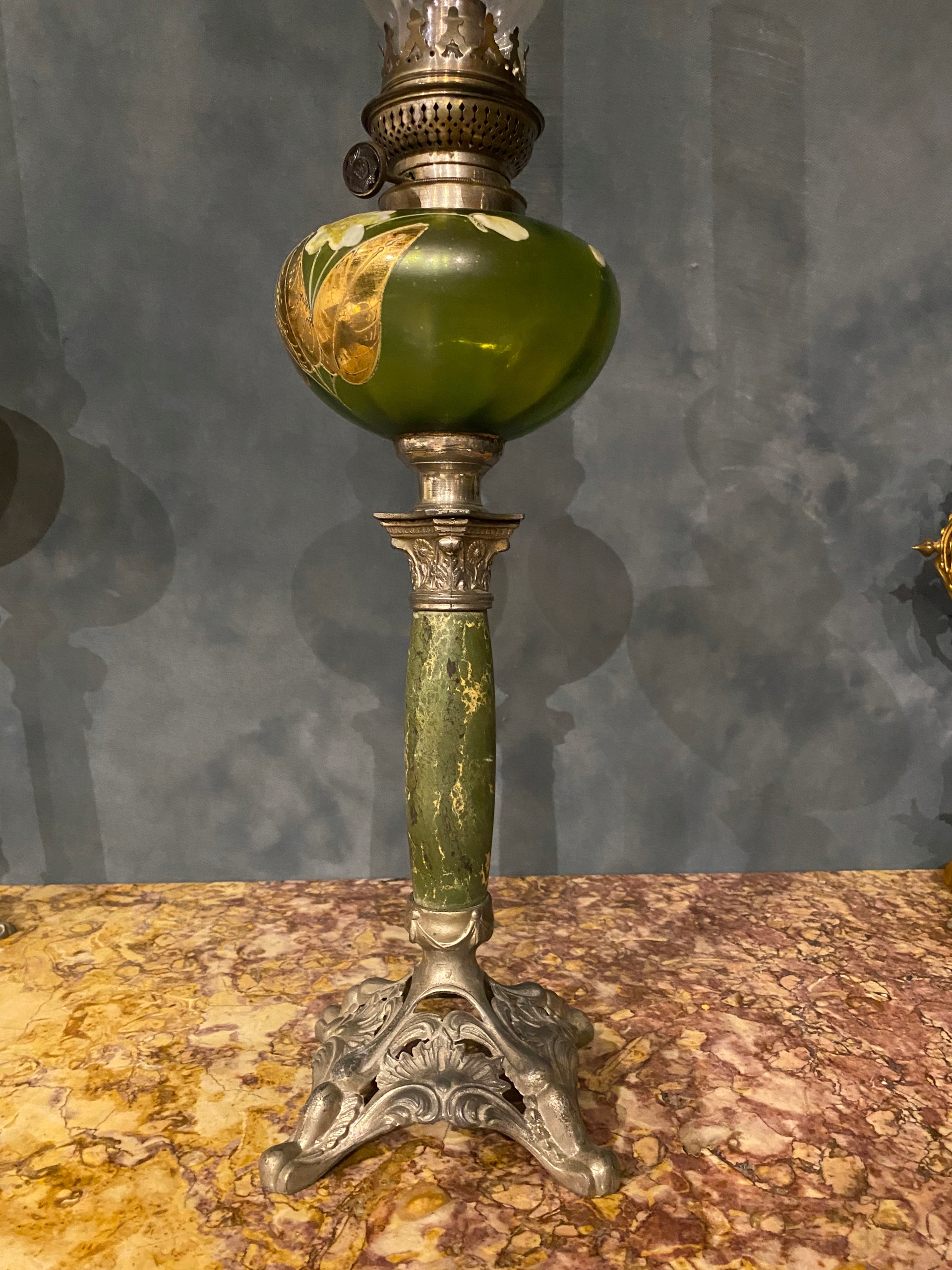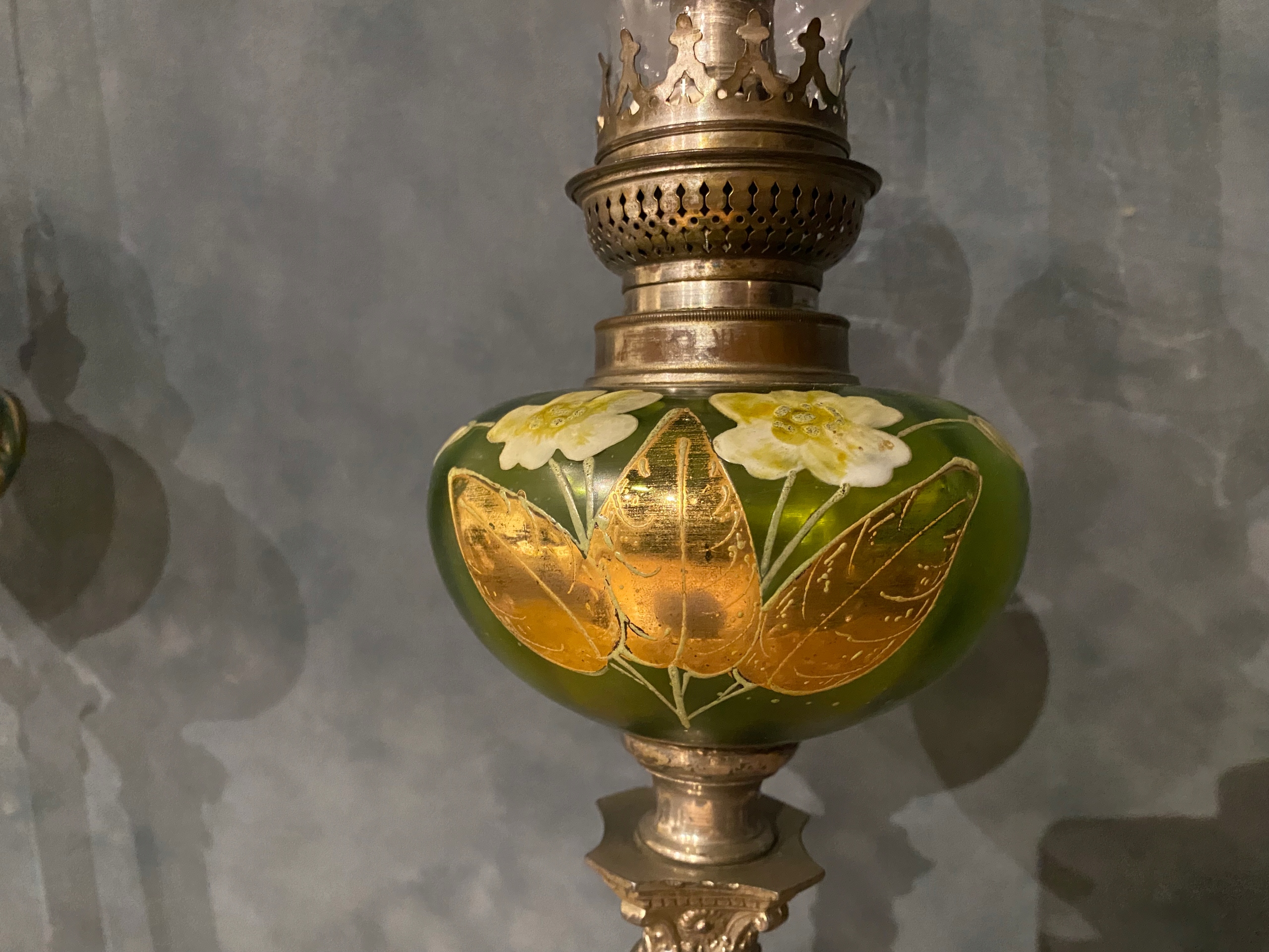 Красивая масляная лампа- окрашенный танк, Франция 19-го века.
