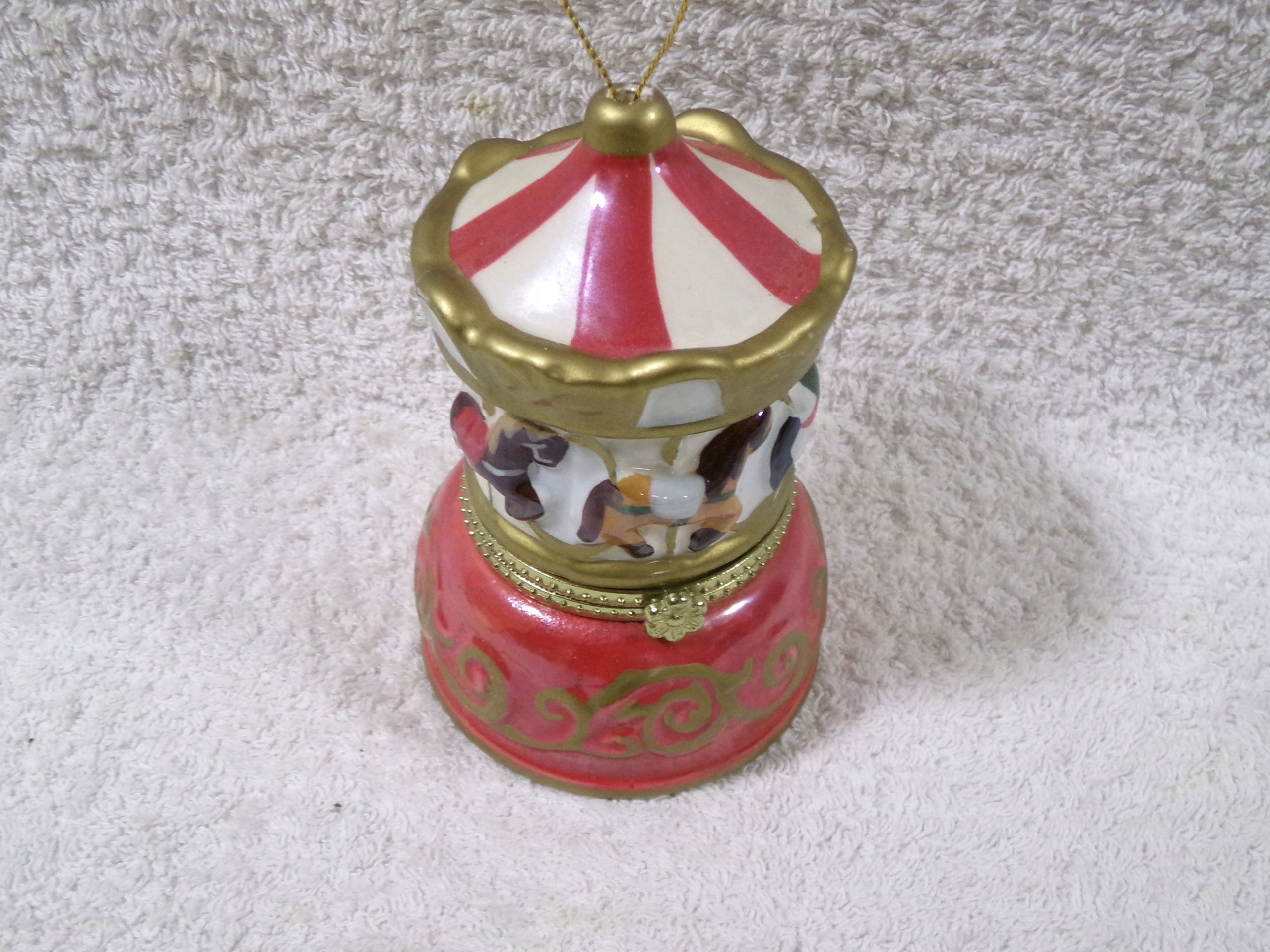 Красивая музыкальная шкатулка с ручным заводом из керамики и пластика, диаметр 8 см, высота 13 см, вес 0,27 кг. Состояние очень хорошее, без повреждений.