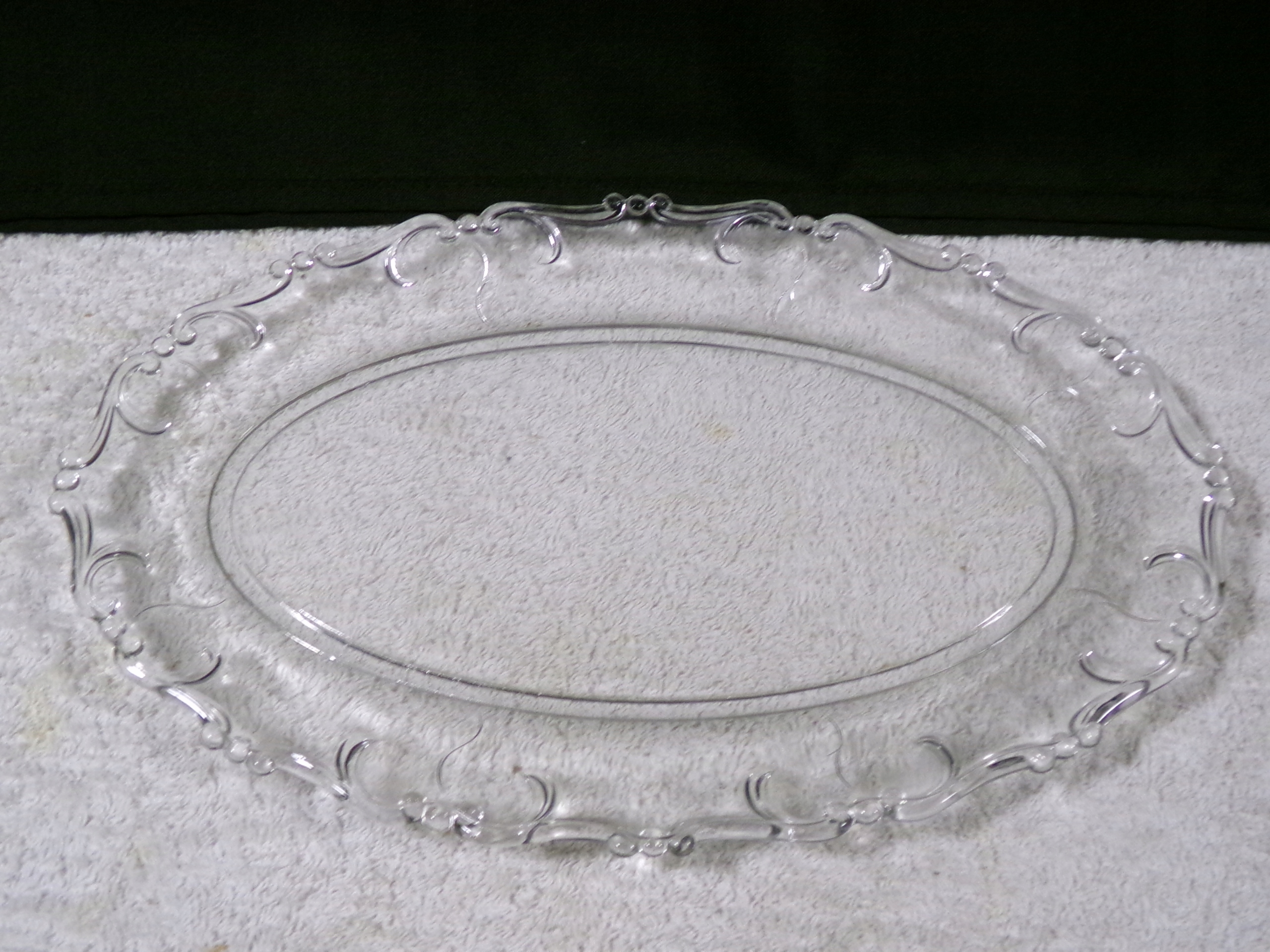 Красивое стеклянное блюдо высотой 2,2 см, диаметр ЦЕНТРА 32,5х21 см, вес 0,80 кг. В очень хорошем состоянии, без повреждений.
