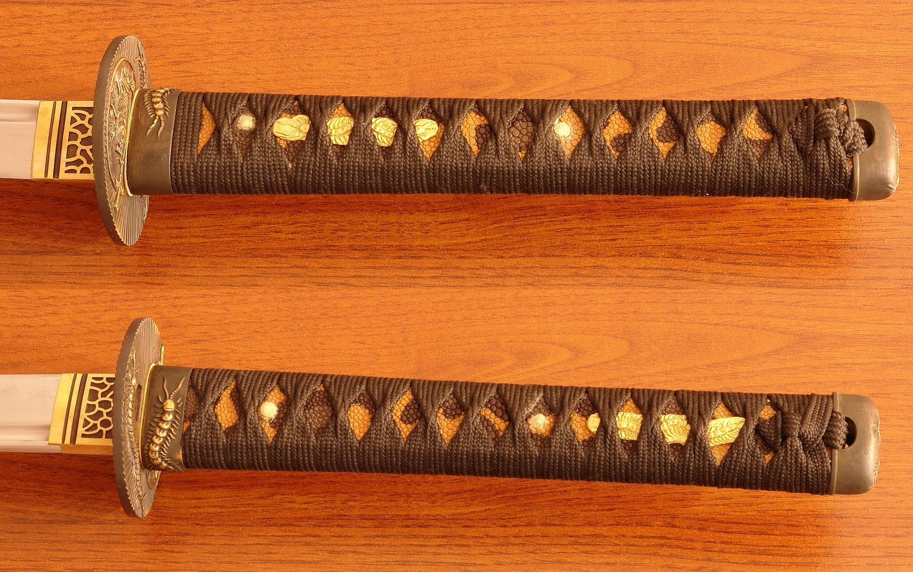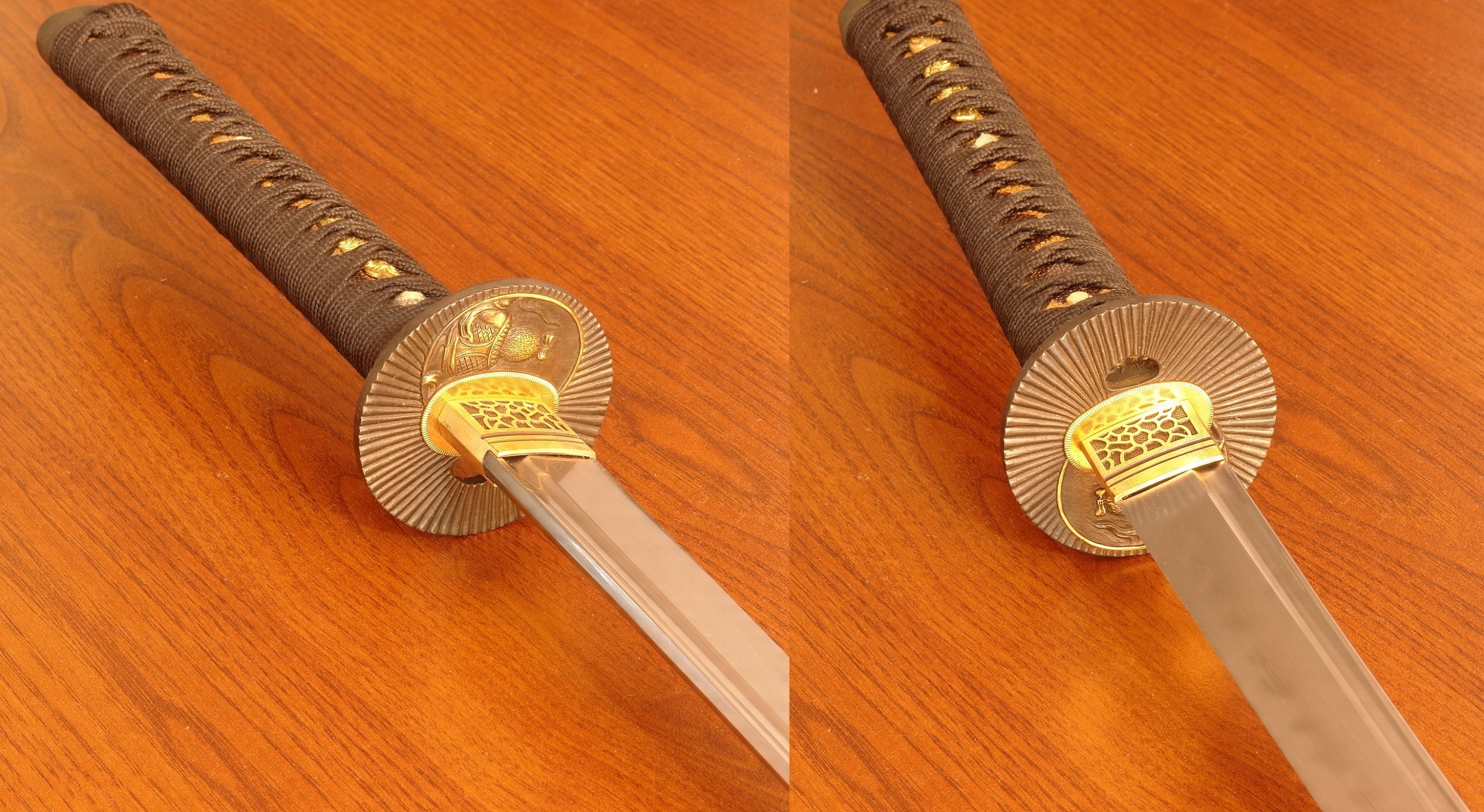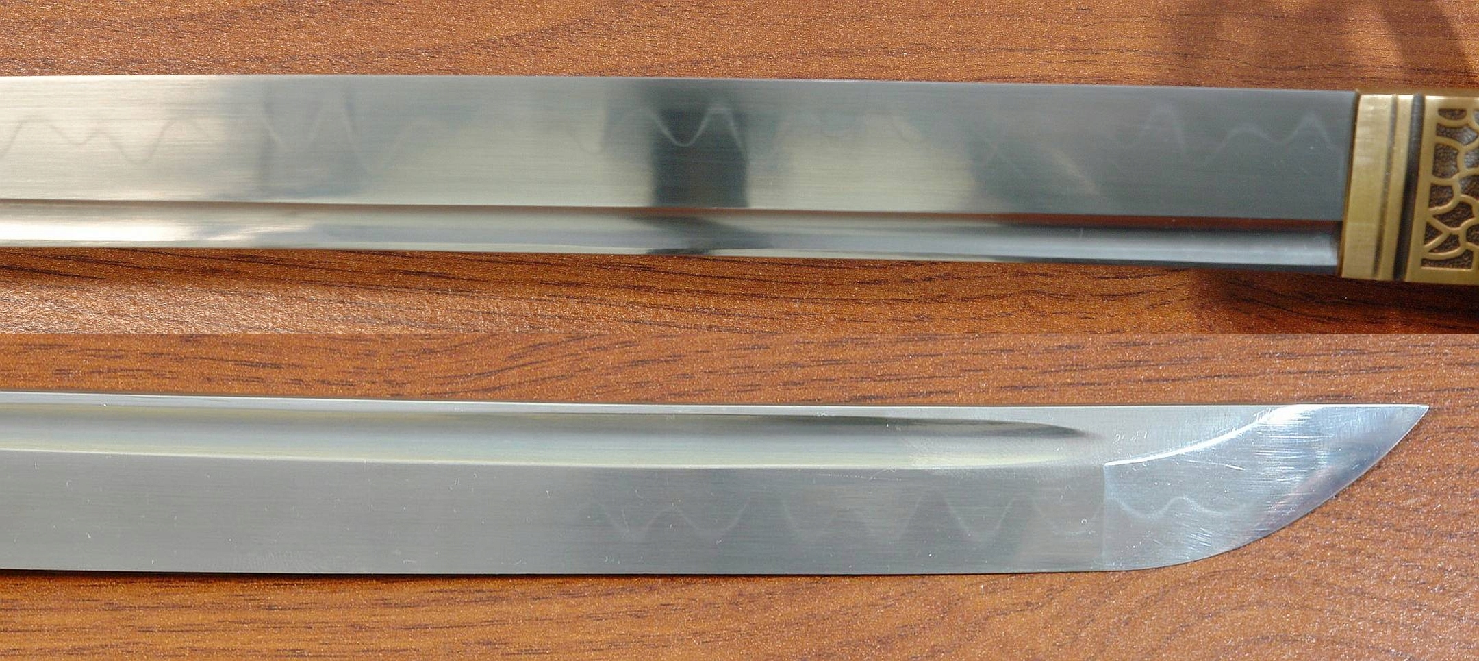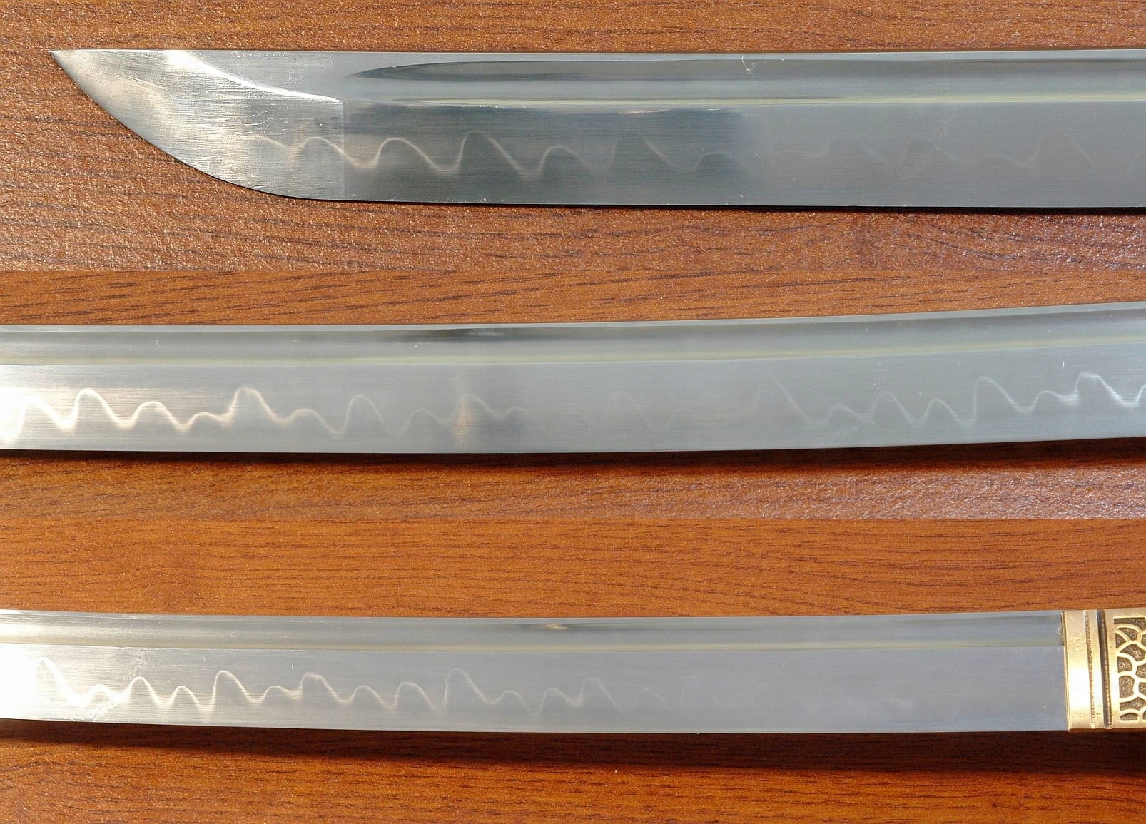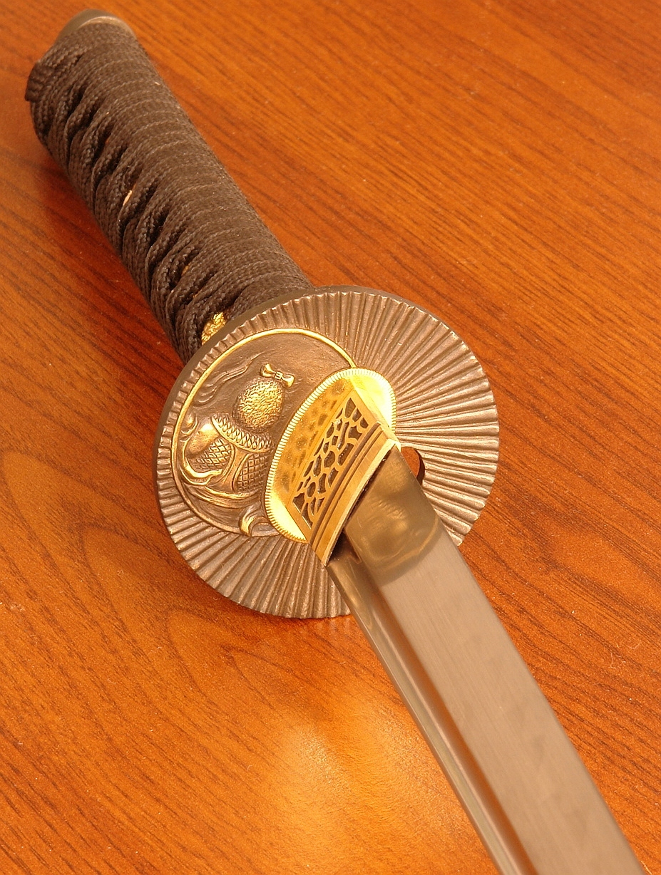 Здравствуйте, почетные Allegrowiczs. настоящий Gunome-Bladare Brak. P>-лезвие Cuta вручную с помощью метода высокоуглеродной стали AISI 1095, покрытый глиной и выборочно затвердевшим в воде, полностью полированной с визуализацией красивого природного Gunome-Midare Brakon, линия гофрированной закапывания (Hamon) очень деликатный со слегка молокому цветом, и его трудно сфотографировать (см. Фото).