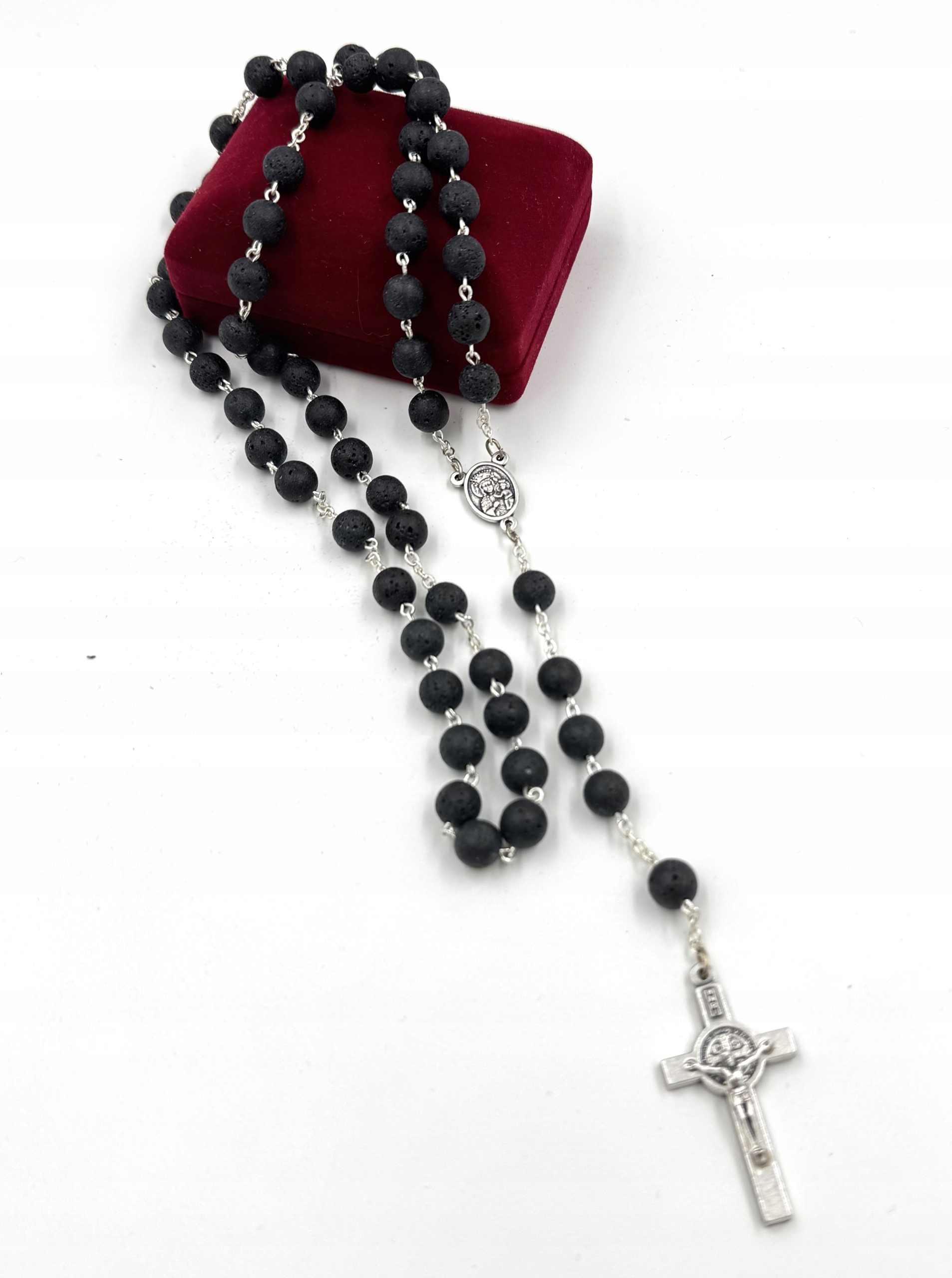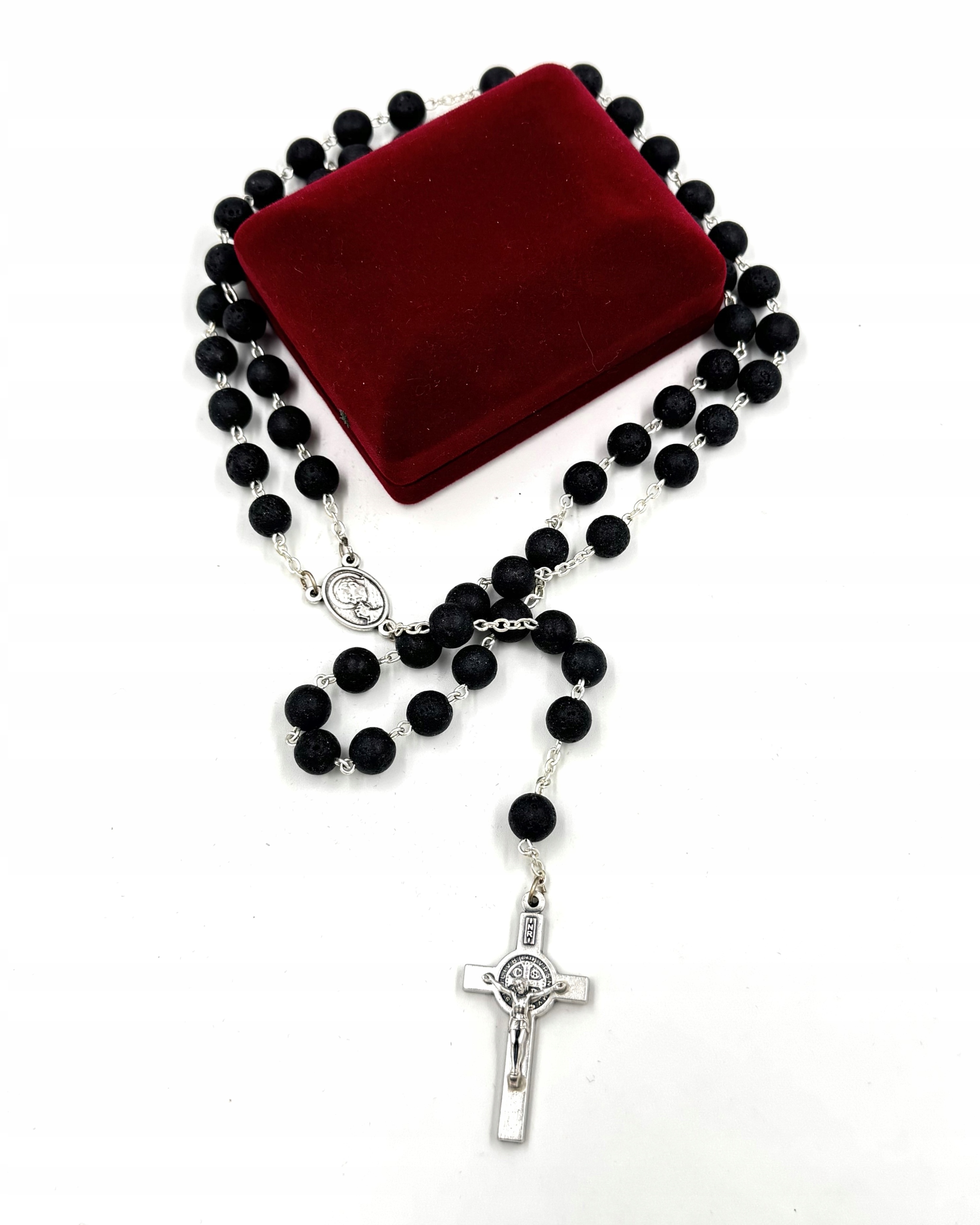 Красивый розарий, большие бусы, вулканический лавовый камень, коробка, подарок