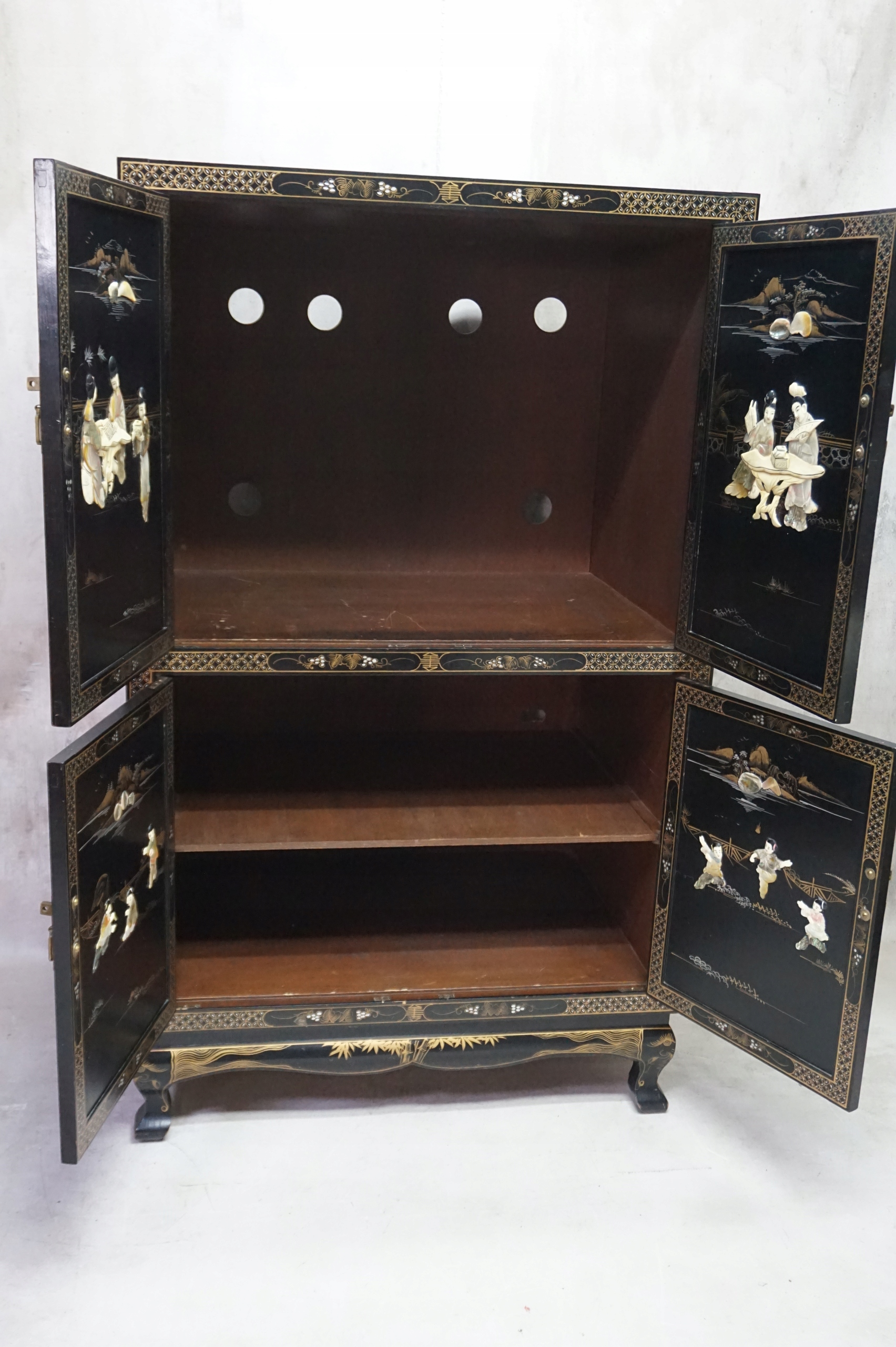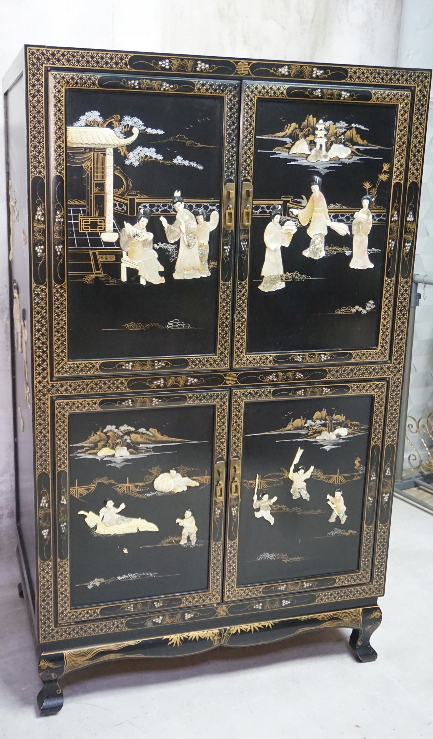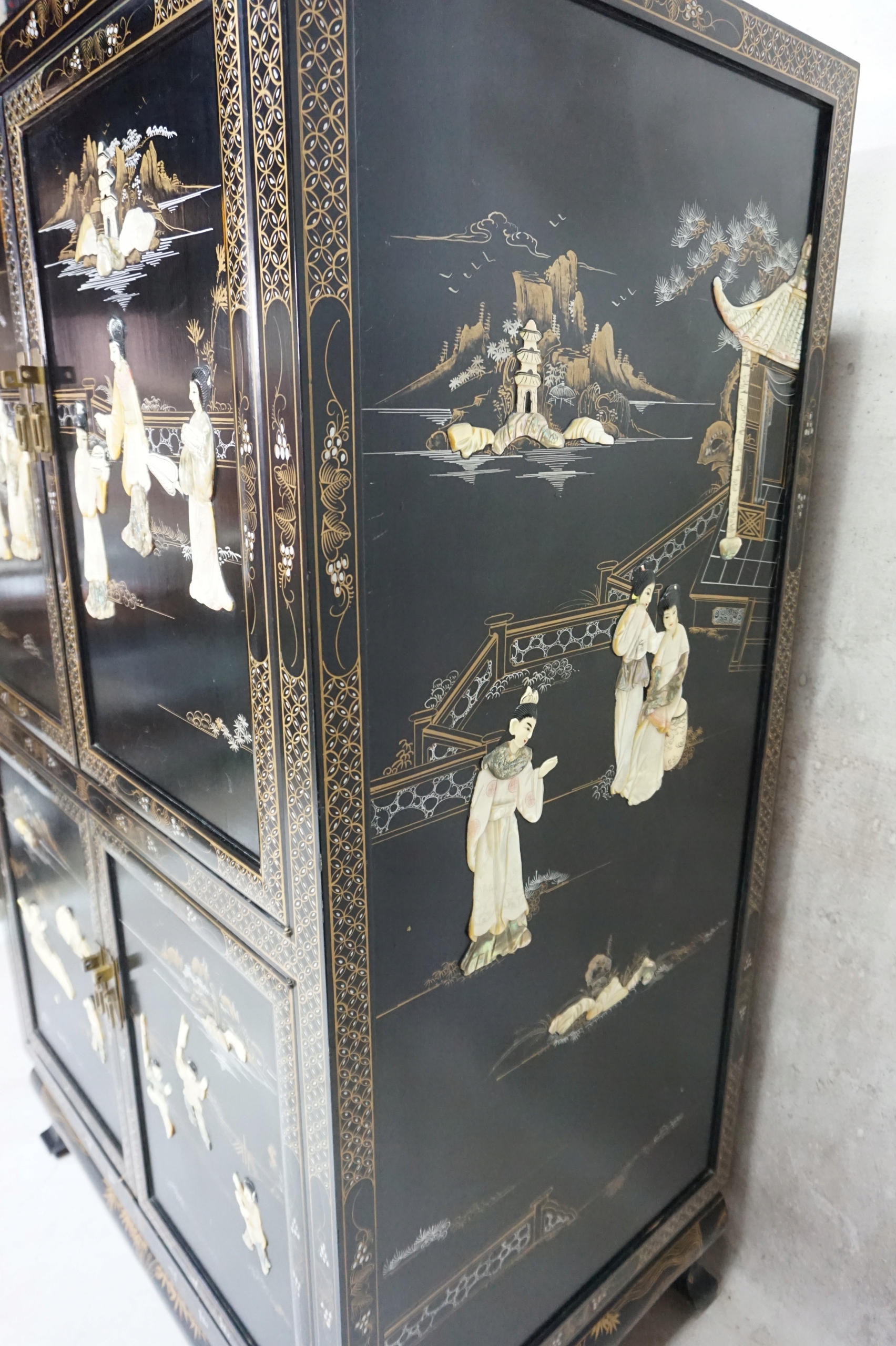 Черный шкаф с позолотой, богато декорированный.