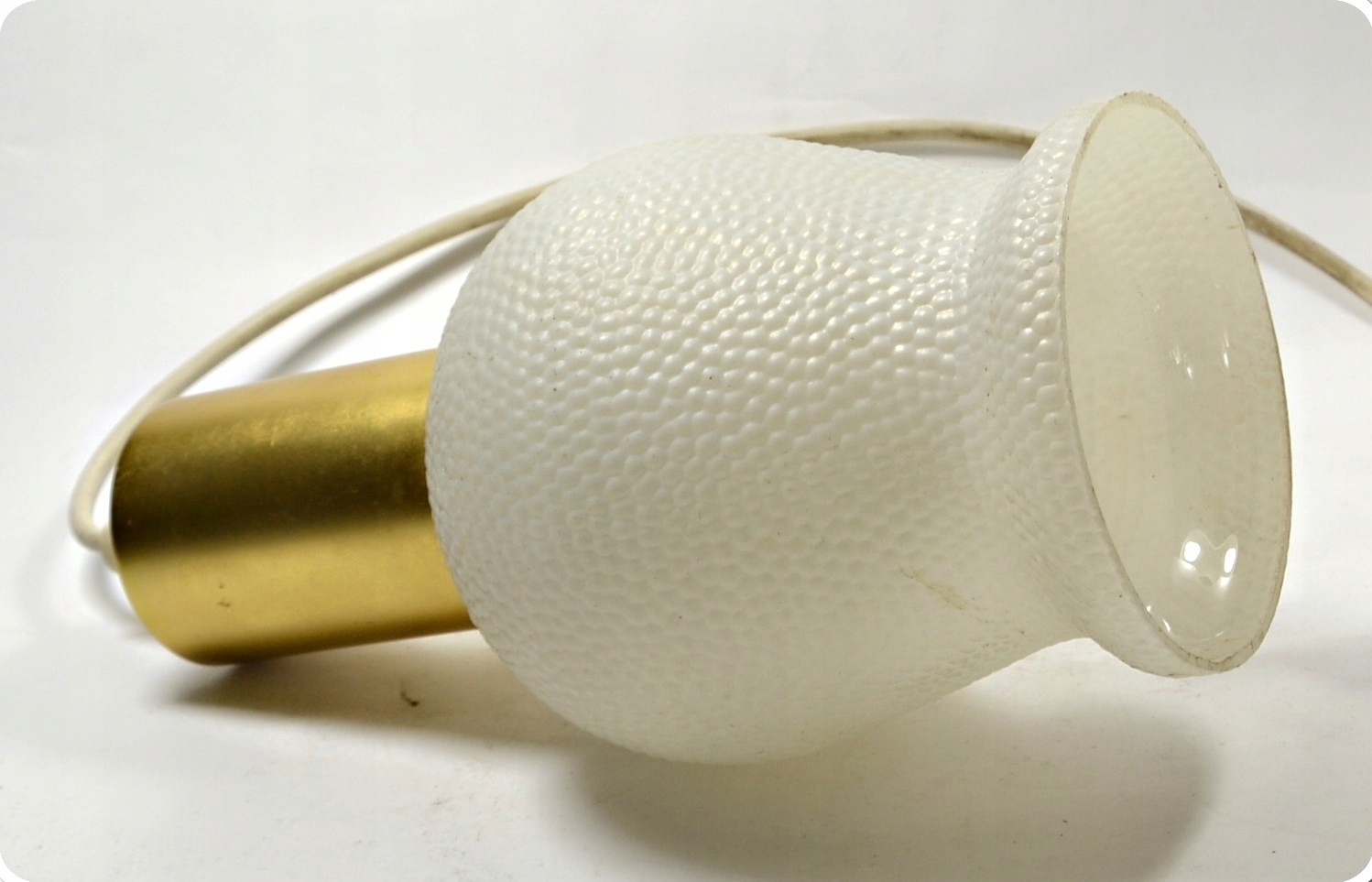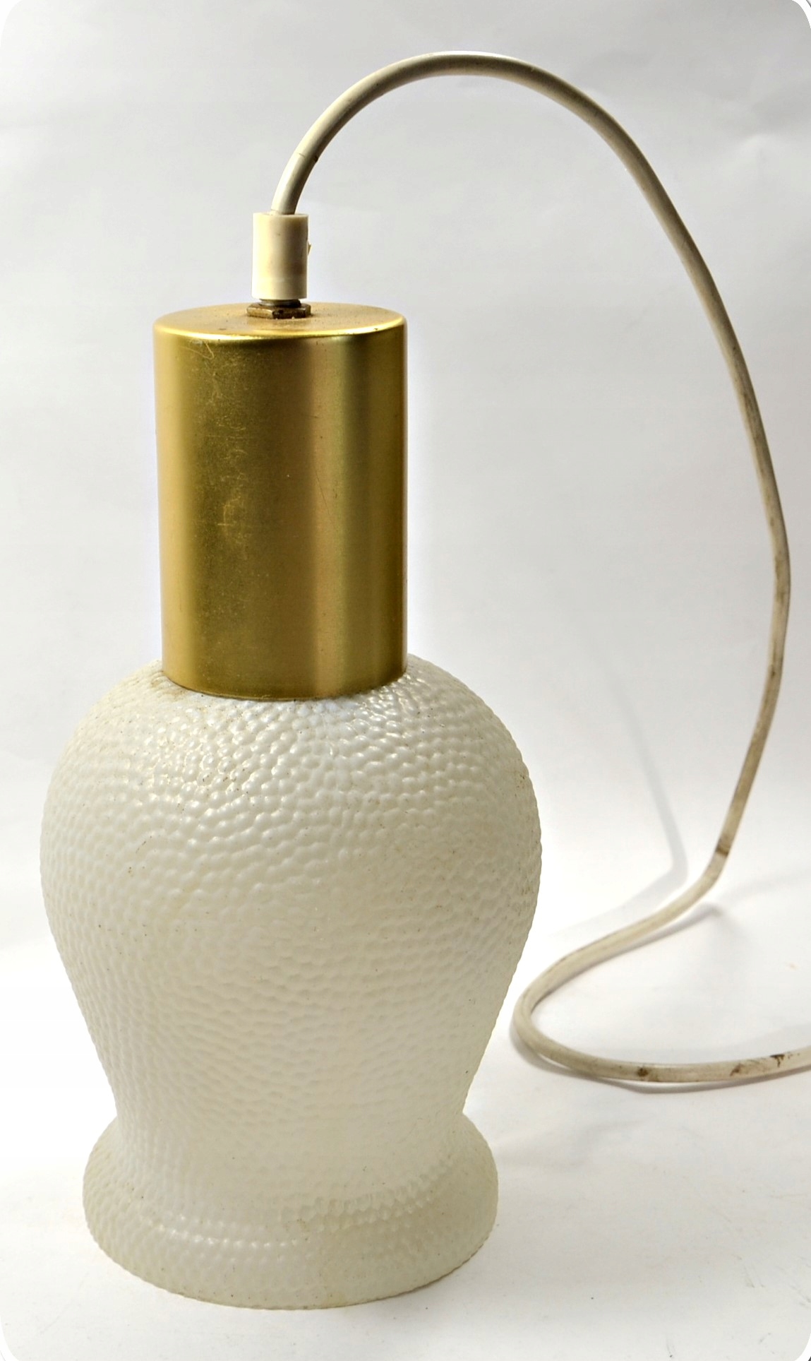 Предмет, посвященный, с красивым, текстурированным, стеклянным абажуром. Элементы объединены с металлом. Лампочка для большой нити.