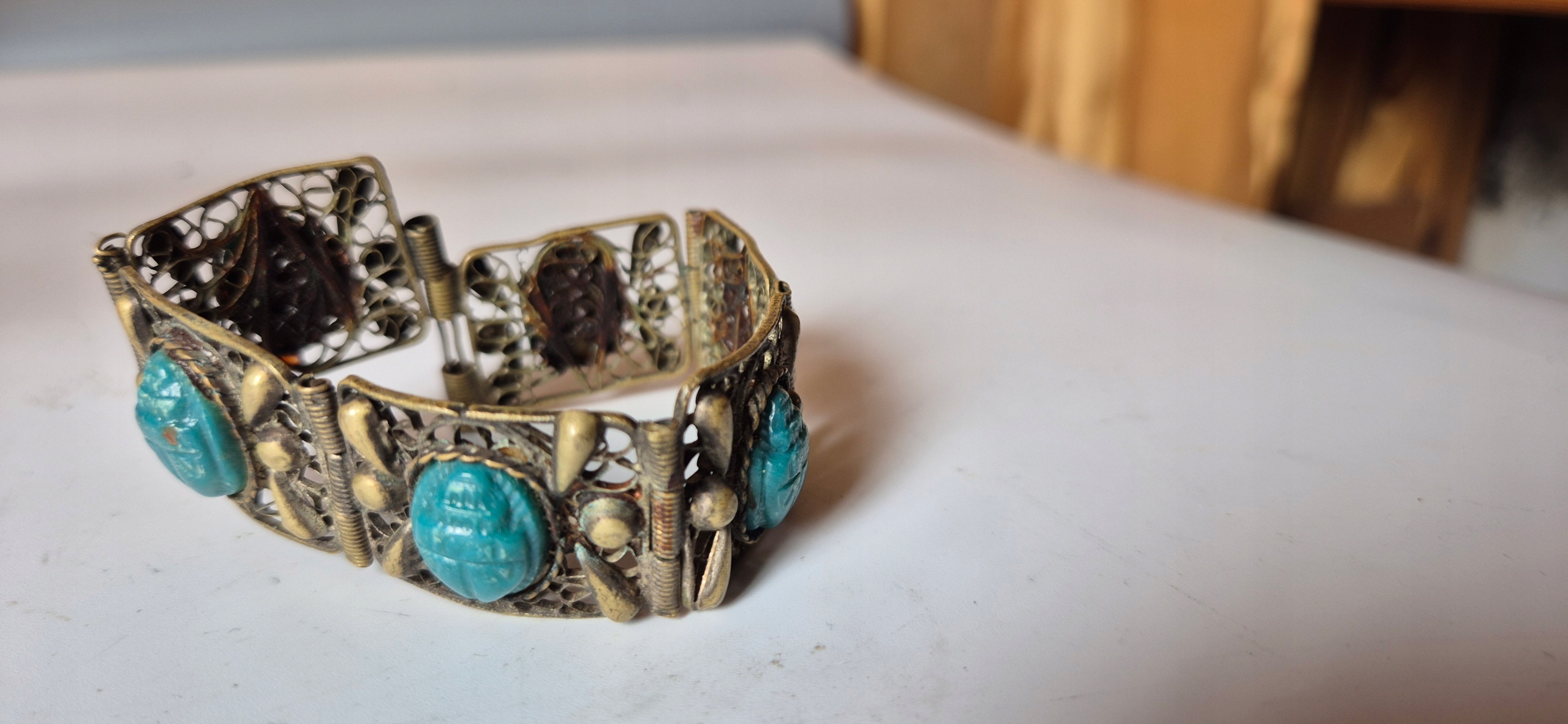 Красивый старый медный браслет в египетском стиле Scarabeus Vintage 15
