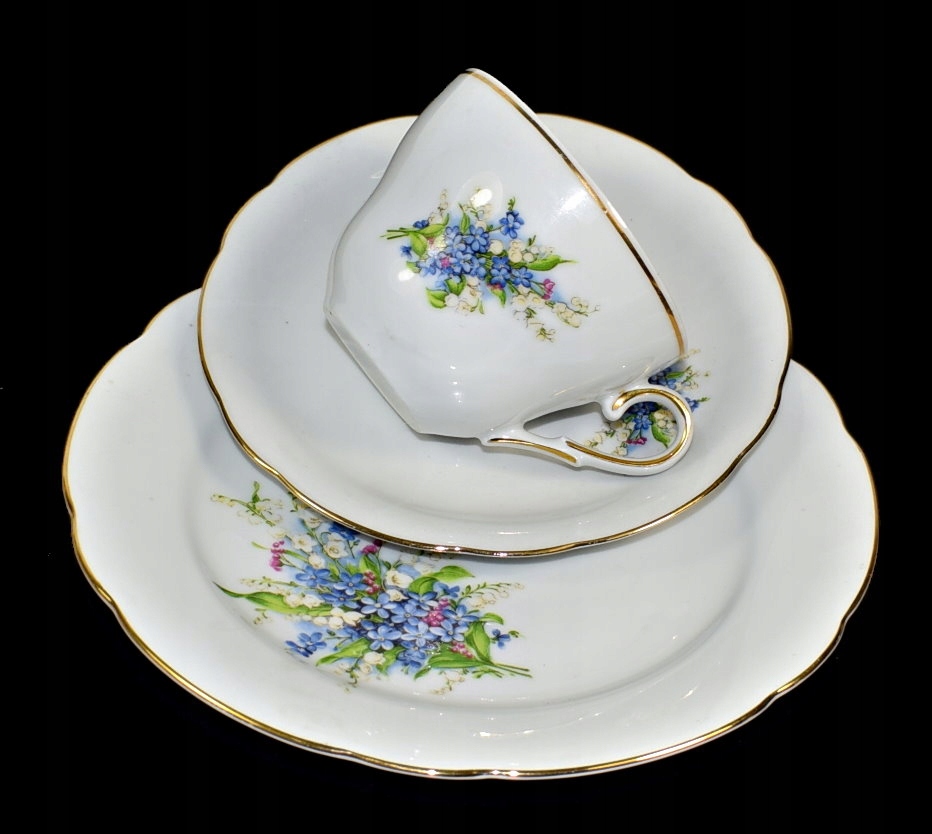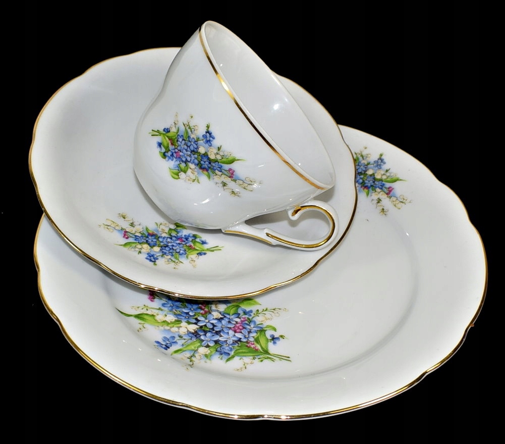 Красивый старый набор для завтрака - позолочен - забудь -me -nots
