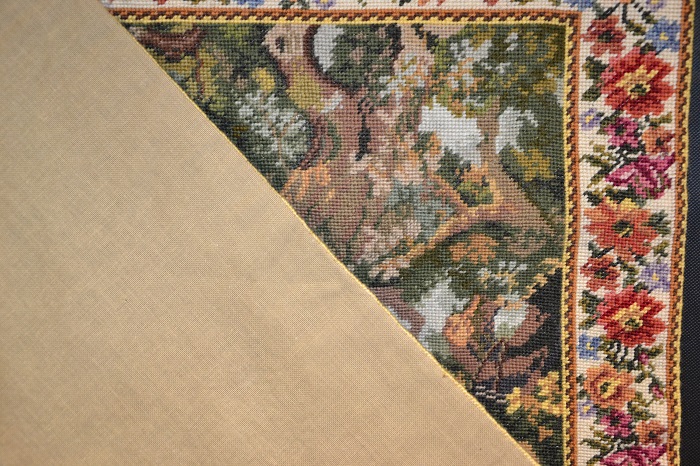 С левой стороны профессиональная подкладка и отделка льняным полотном с подвесками. .