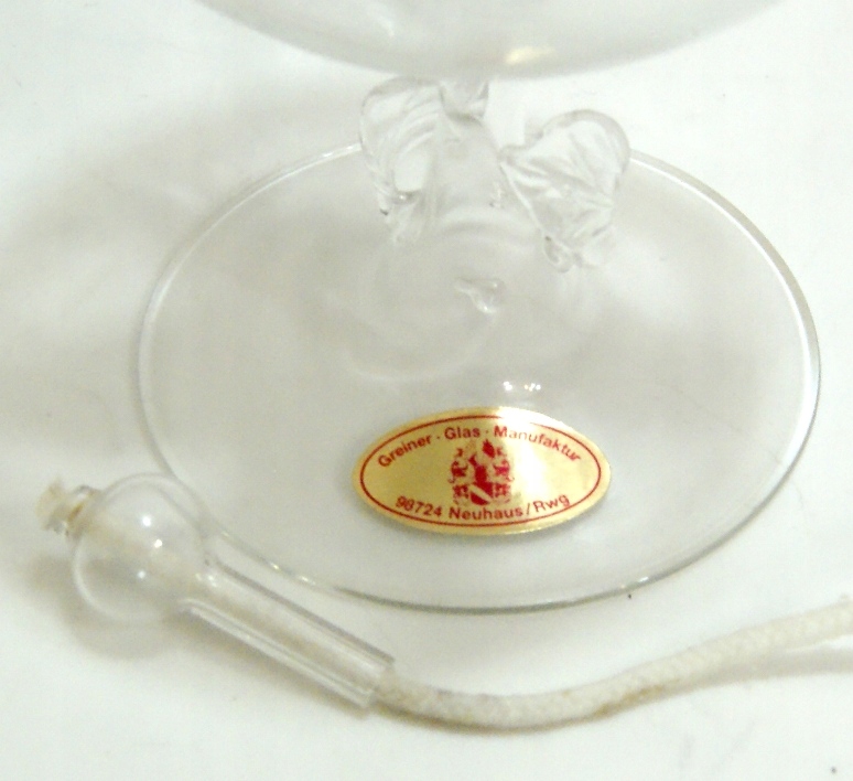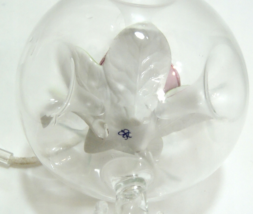 Красивая, старинная лампа для ароматических масел. Стекло хрустальное, бесцветное, клеймо, фарфоровая роза тоже клеймо.