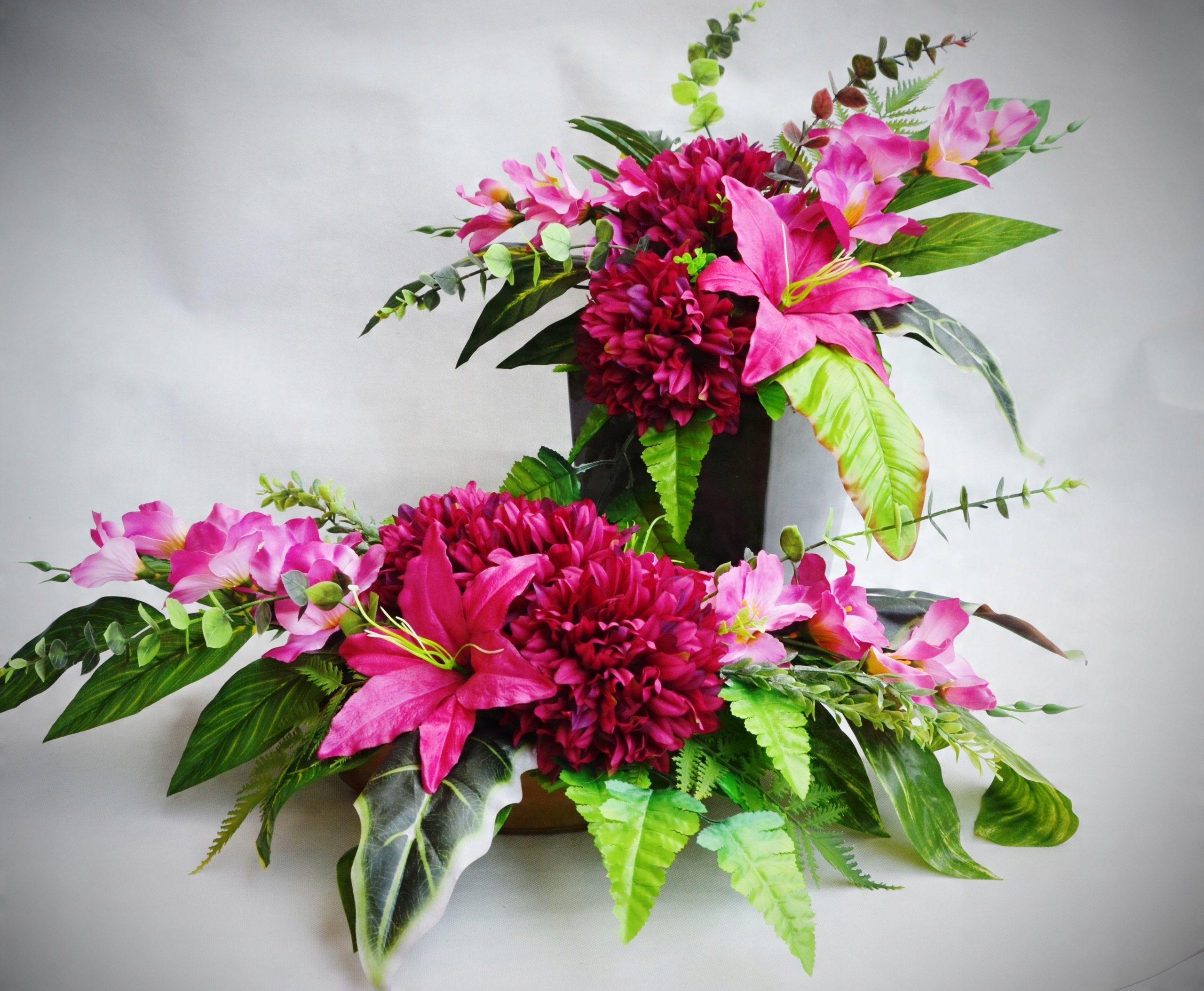 Букет и букет прекрасны, как живые. композиции, но они останутся на могиле гораздо дольше, чем срезанные цветы.