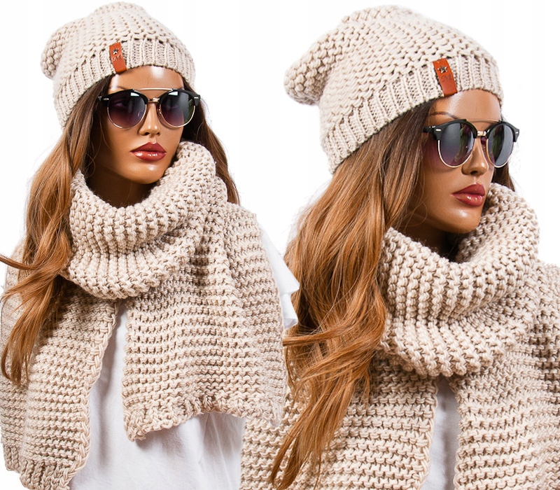 Комплект отличается от других интересным плетением и большим ШАРФОМ, который добавляет всему шика и элегантности.
