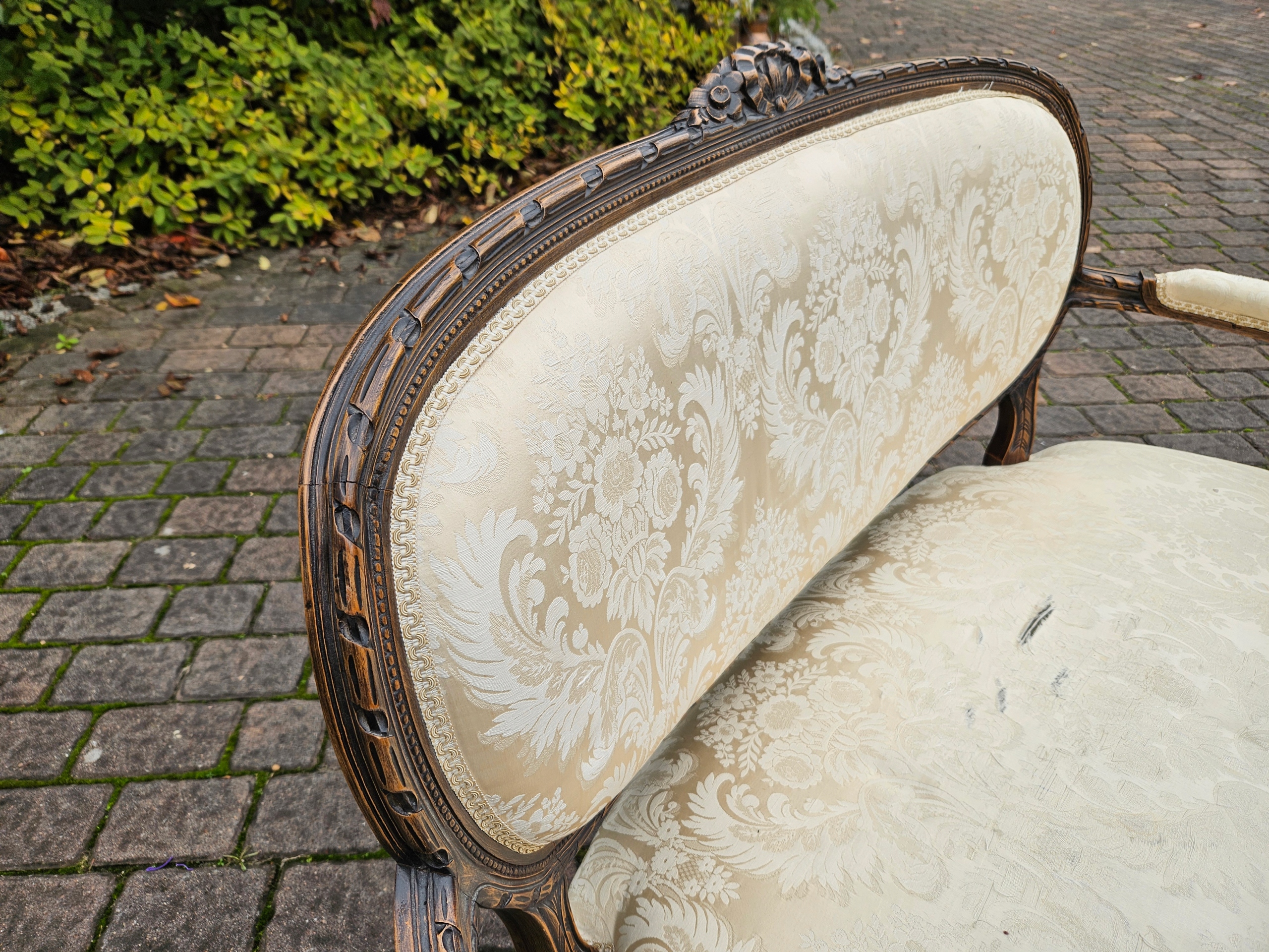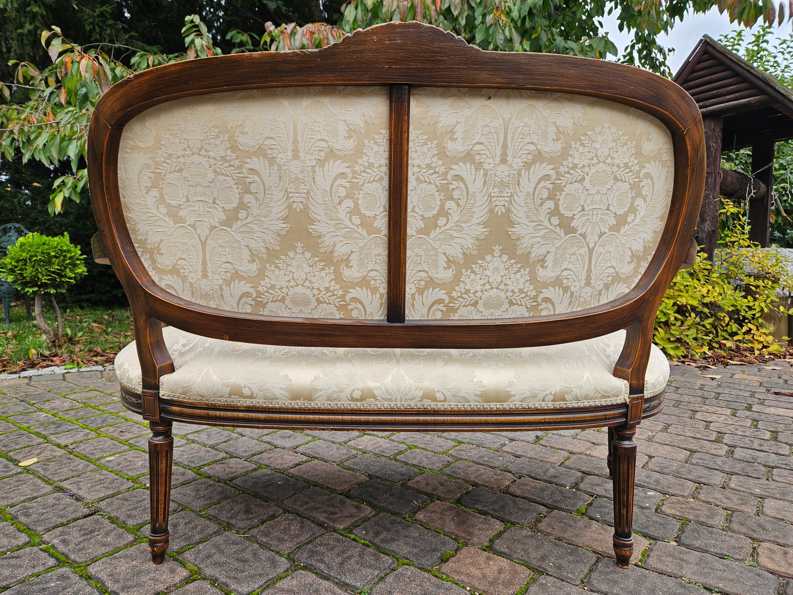 Красиво оформленный стильный двухместный диван.