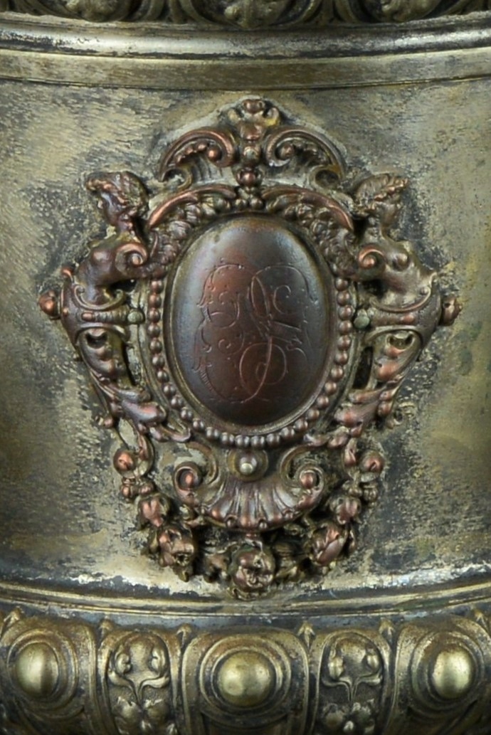 - очень богато украшенный экземпляр, каждый элемент с интересным орнаментом, два очень декоративных картуша с гравюрами - один с 1886 годом, другой с монограммой.