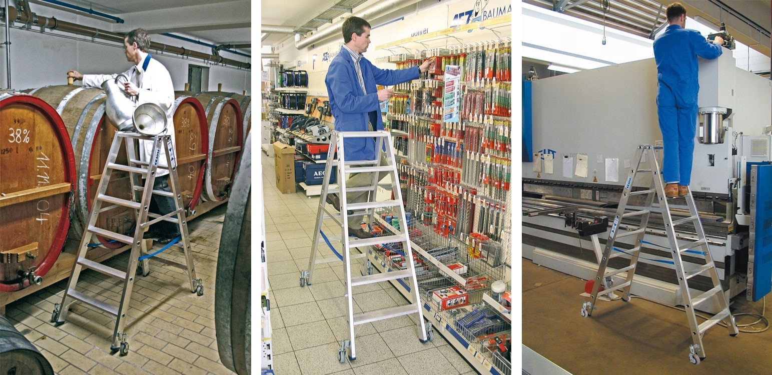Практическая двойная алюминиевая лестница от krause stabilo 2x6 градусов -лучший пример хорошей ценовой взаимосвязи. Укрепленные края продольных, , а также инценкулярные соединения ступеней с продорами, обеспечивают долгосрочную лестницу в течение многих лет. Двойная защита от автоматического распределения лестницы во время использования гарантируется болтовыми ремнями и полосками . Корковированная поверхность шагов выполняет не -SLIP -функцию, а дополнительные усиления на более низких уровнях увеличивают прочность при нагрузке. Safeticap двухэлементных футов и система рулона , защитите лестницу от самооценки, придавая ей стабильность и безопасное положение. ролики Упрощают перемещение лестницы.