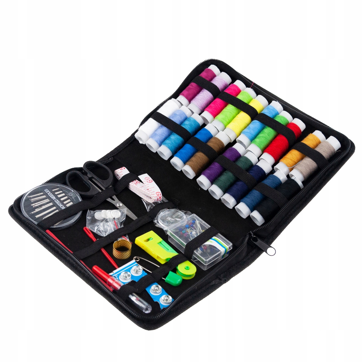 У каждого из нас иногда бывает сломанная пуговица или дырка на любимой блузке. Стоит иметь под рукой хорошо оснащенный швейный набор. Ящик для швейных инструментов, заключенный в элегантный футляр, будет означать, что вам никогда не придется нервно искать нужную иглу или ножницы – все всегда будет под рукой и в идеальном порядке. > В комплект входит Прибл. 100 элементов, включая нитки разных цветов - вы всегда можете выбрать подходящий для ткани, которую шьете. Благодаря небольшому размеру и вшитым резинкам, предотвращающим перемещение аксессуаров, вы всегда сможете носить комплект с собой. Не только дома, но и в путешествии.