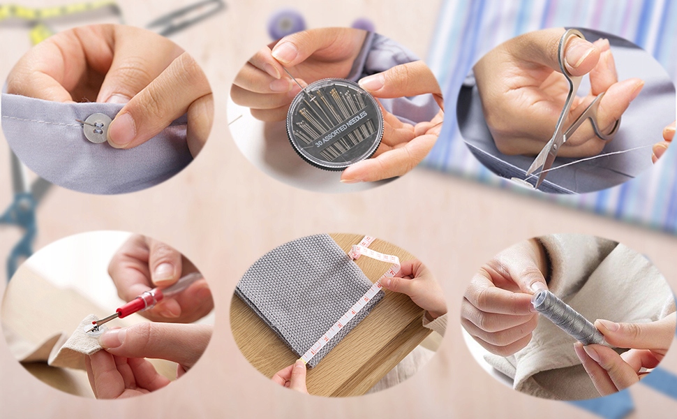 - Практично упакован в Стильный футляр, облегчающий переноску и хранение посуды. Его можно легко хранить в ящике, сумочке или рюкзаке, чтобы все необходимые швейные принадлежности были под рукой.