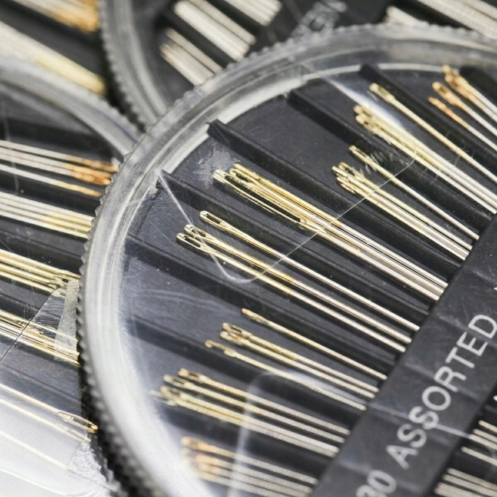 - Кроме того, иглы оснащены золотыми кончиками, что гарантирует лучшую видимость во время работы и облегчает прокалывание материала.