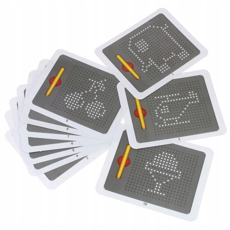 Магнитная доска с шариками – отличный способ борьбы со скукой! На ней можно рисовать, как на листе бумаги – достаточно коснуться стилусом соответствующего отверстия, и шарик внутри доски поднимется и заполнит отверстие. Чтобы спрятать шарики и начать заново, просто переверните стилус ненамагниченной стороной и проведите им по изображению.