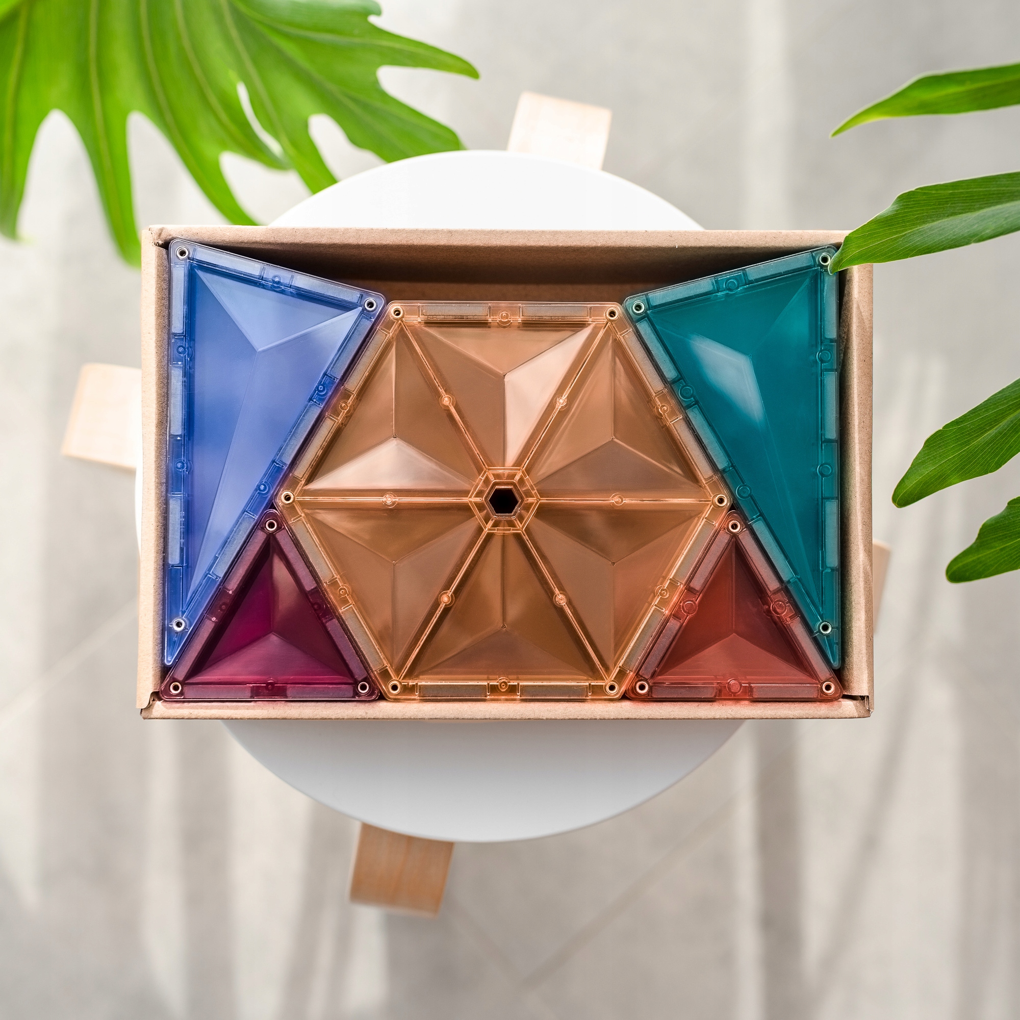 Прозрачная, тонированная плитка не обесцвечивается и устойчива к повреждениям. Встроенные, приклепанные сильные неодимовые магниты позволяют блокам притягиваться друг к другу со всех сторон, создавая устойчивые трехмерные модели. Уникальный щелчок при соединении плиток доставляет удовольствие маленьким инженерам.