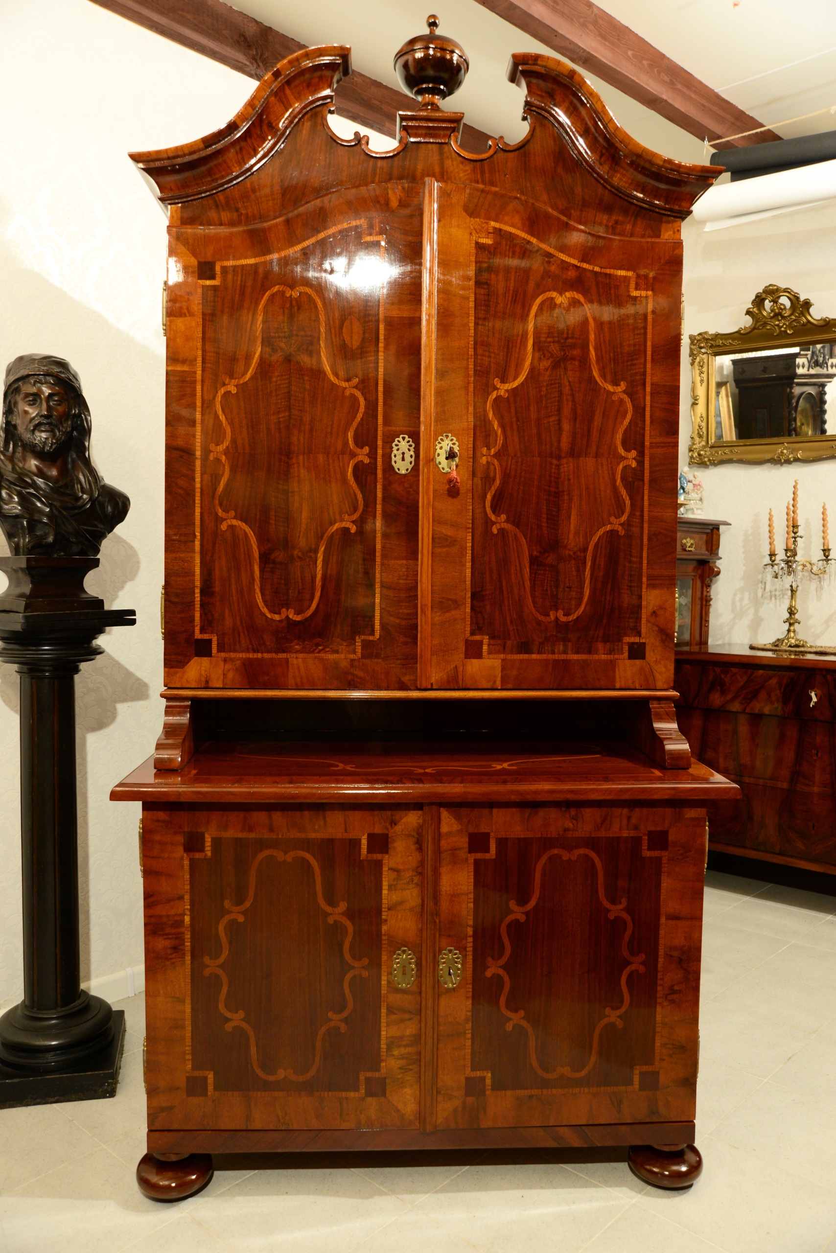 • каждый элемент мебели - дверные фасады, боковые стороны и верх украшены, среди прочего, инкрустацией лентой и узорчатым шпоном. орех