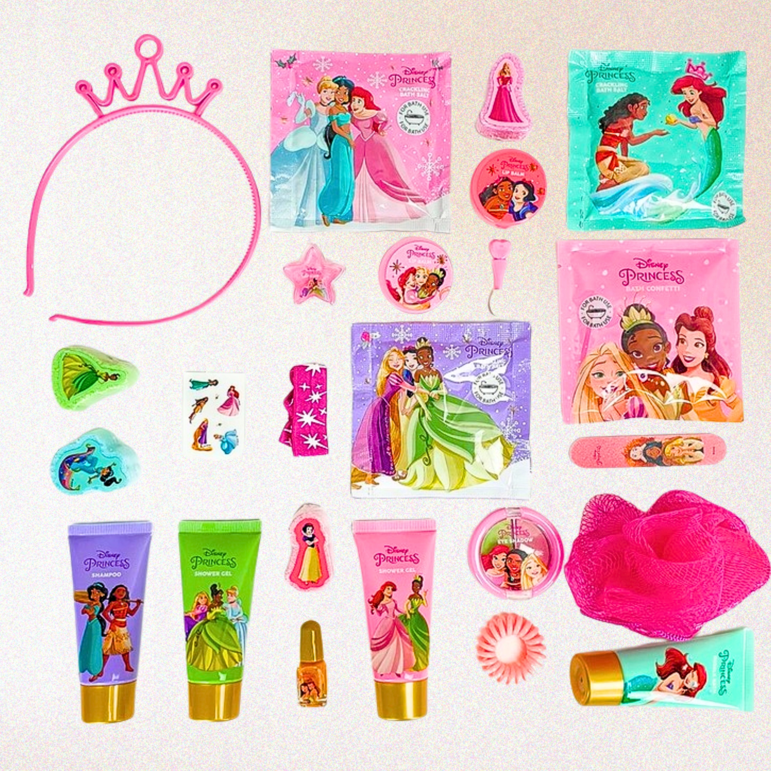 ⚙ Содержание: 24 продукта, включая блеска для губ, бальзамы, соли и таблетки для ванны, косметику и аксессуары по уходу