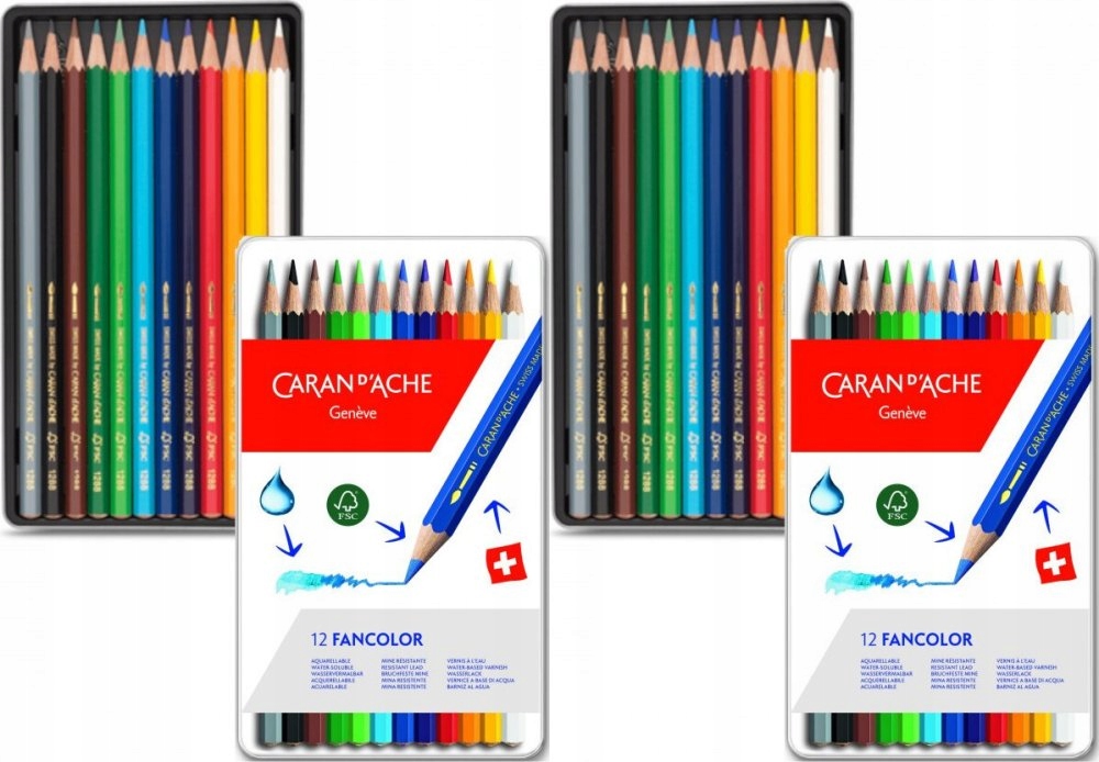 Kredki akwarelowe Caran d'Ache 12szt METAL ETUI x2