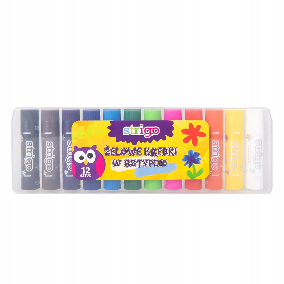 KREDKI ŻELOWE 12 KOLORÓW STRIGO W SZTYFCIE ŚWIECOWE